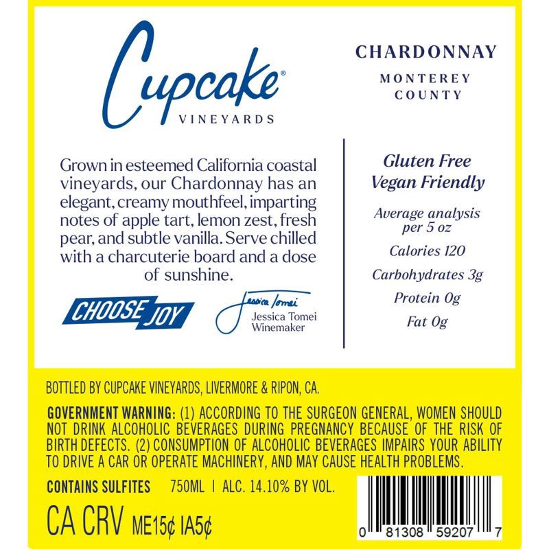 - Cupcake Vineyards Chardonnay white wine has an elegant, creamy mouthfeel, imparting notes of apple tart, lemon zest, fresh pear, and subtle vanilla.