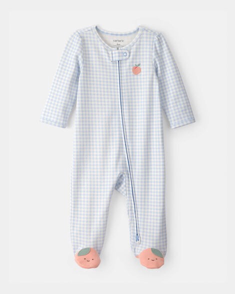 Carter's Baby Girl Peach Gingham 2-Way Zip 100% Cotton Sleep & Play Pajama - Blue 9M