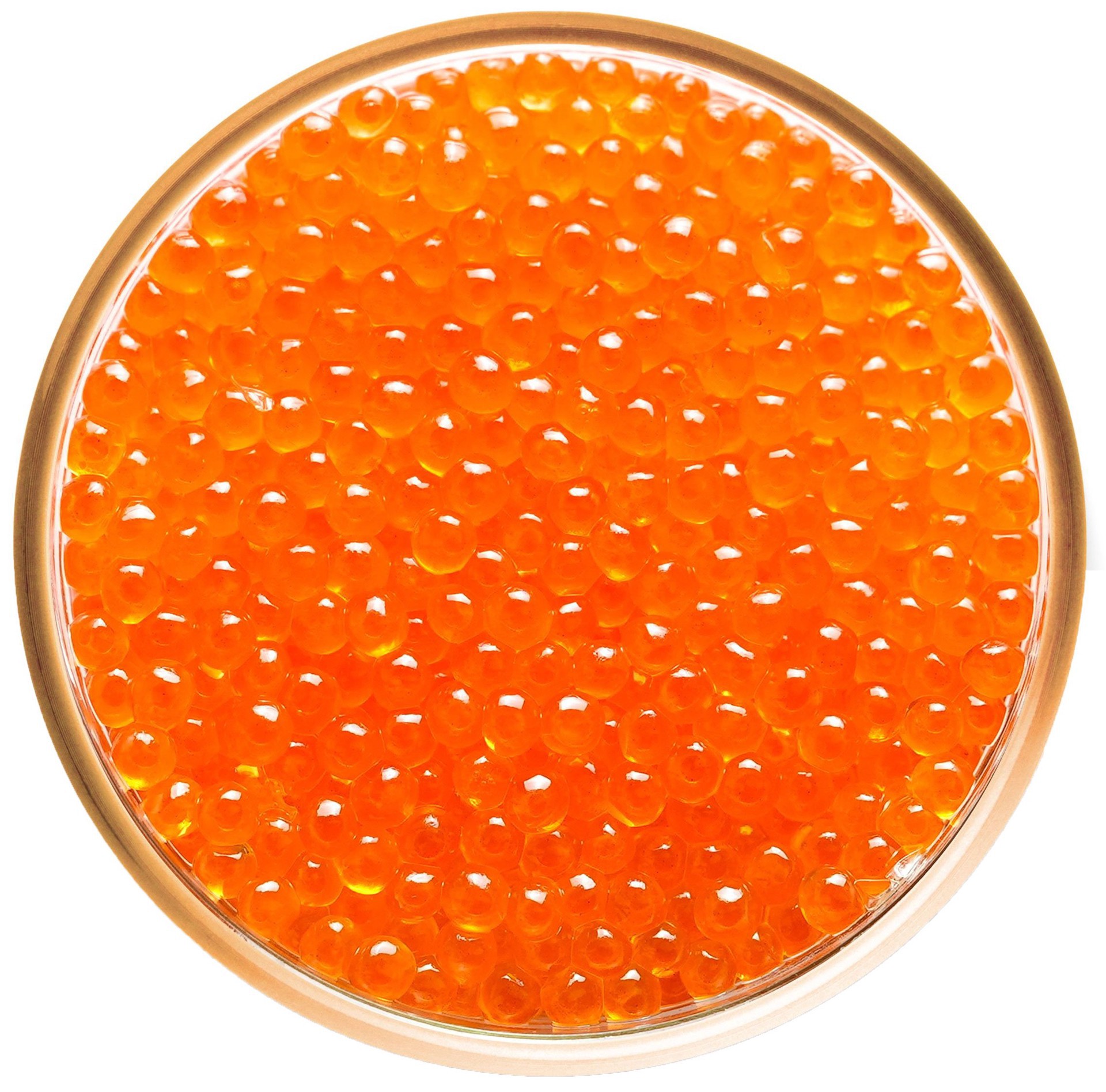 Trout Rainbow Caviar (Oncorhynchus mykiss) is harvested in Denmark. Its small pearls are vibrant with hues of translucent golds and oranges. The caviar, itself, has a sweeter flavor profile.