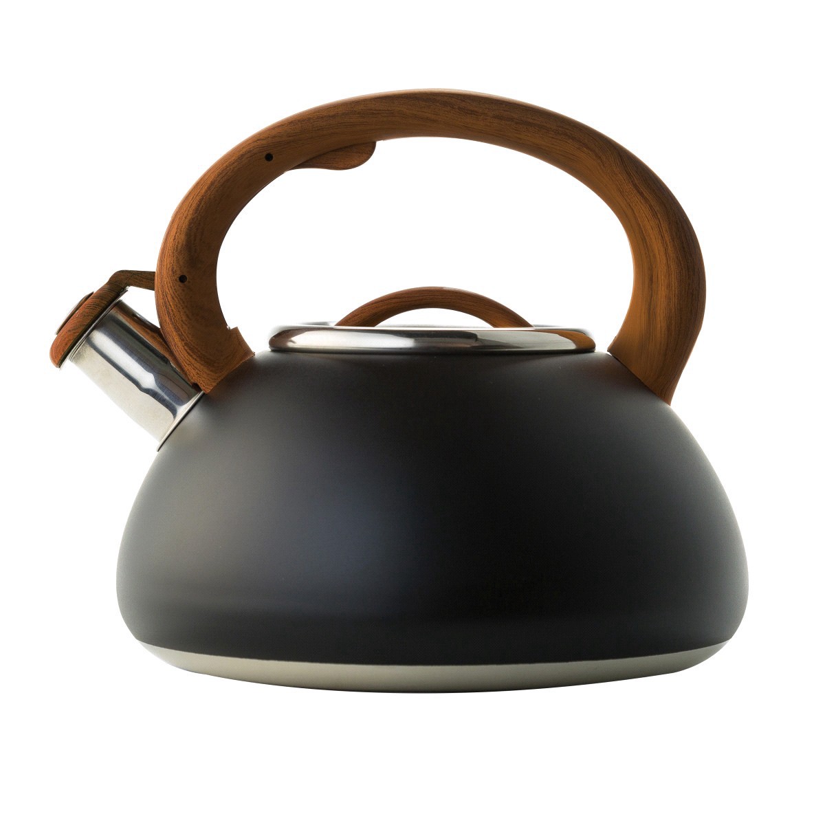 This stainless steel tea kettle has contemporary shape to go with its seamless bottom construction. The soft touch, stay cool handle with trigger release spout allows for safe handling and even pourin…