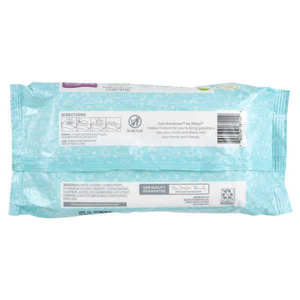 Meijer Fragrance Free Baby Wipes are safe for sensitive skin and are made up of 99 water and plantbased ingredients. Compare to Seventh Generation.