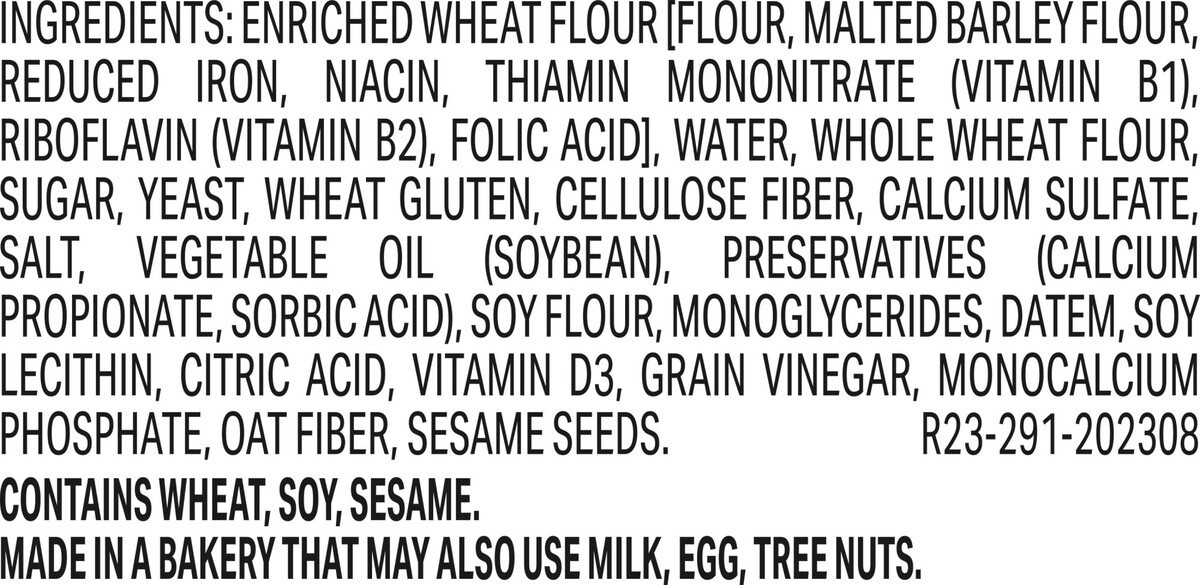 Enriched Wheat Flour [Flour, Malted Barley Flour, Reduced Iron, Niacin, Thiamin Mononitrate (Vitamin B1), Riboflavin Vitamin (B2), Folic Acid], Water, Whole Wheat Flour, Sugar, Yeast, Wheat Gluten, Ce…