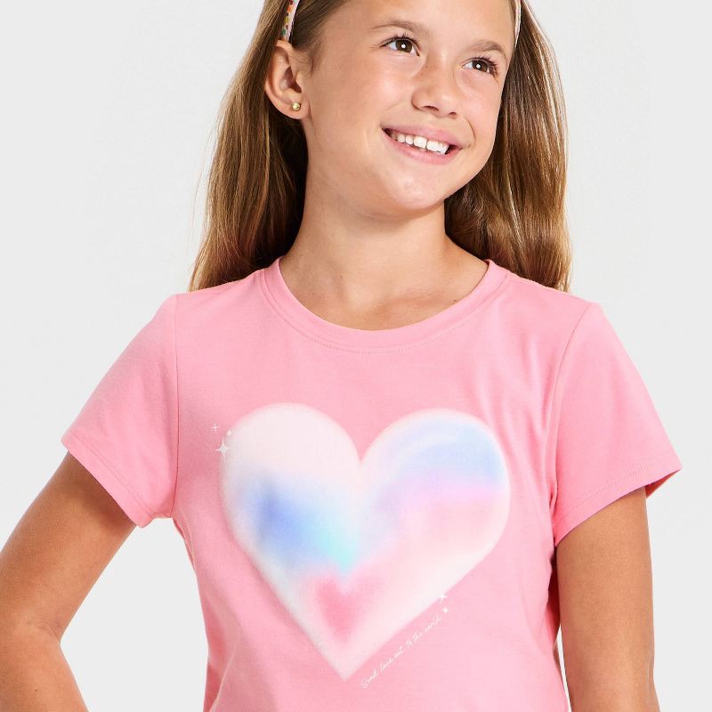 Girls' Short Sleeve 'Airbrush Heart' Graphic T-Shirt - Cat & Jack ™ Pink M