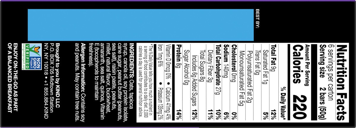 Oats, Tapioca Syrup, Canola Oil, Soy Protein Isolate, Cane Sugar, Peanut Butter (Peanuts, Sea Salt), Raisin Paste, Peanuts, Millet, Natural Flavor, Buckwheat, Amaranth, Sea Salt, Quinoa, Vitamin E (To…