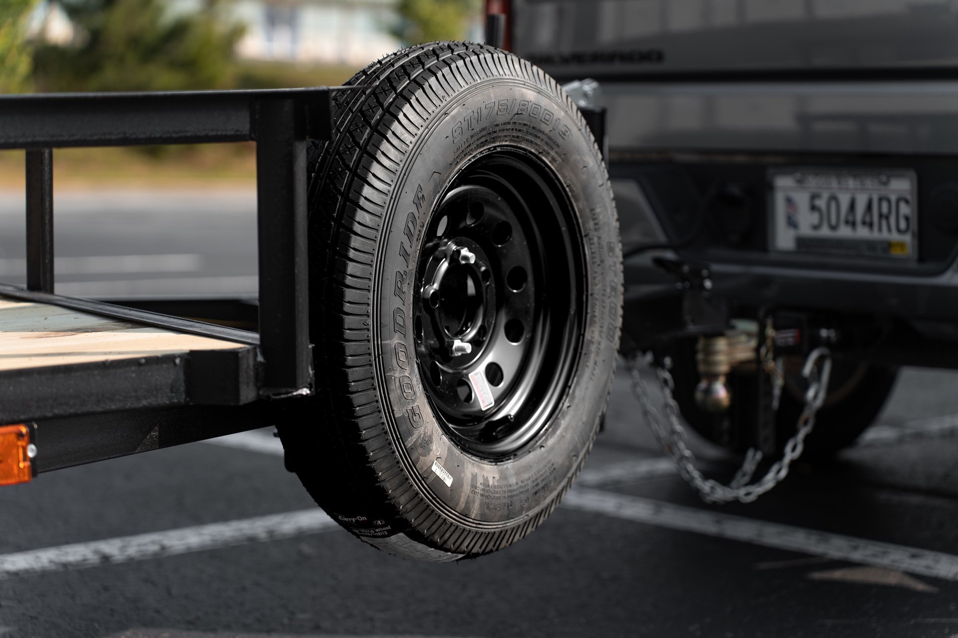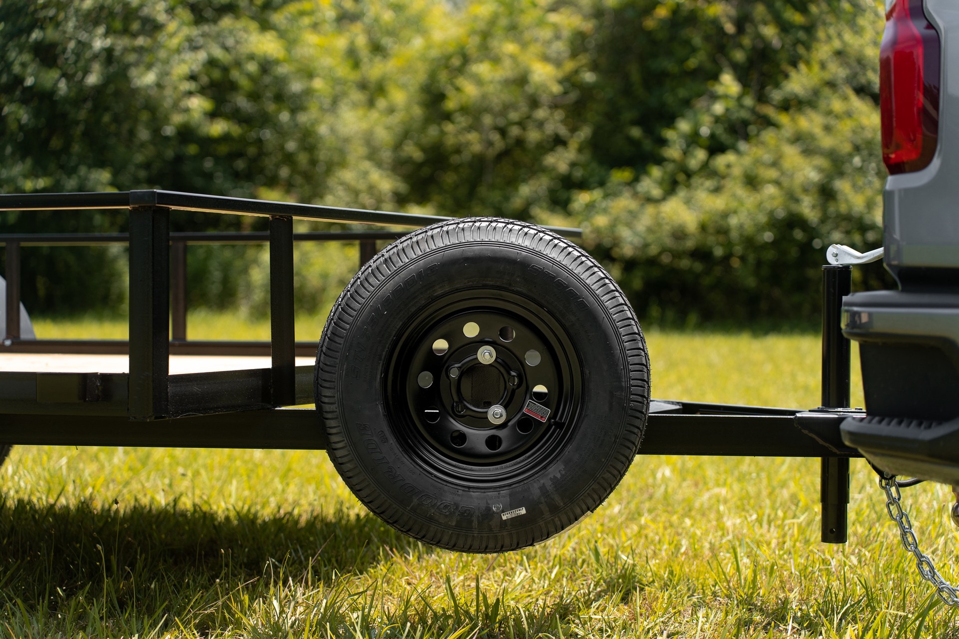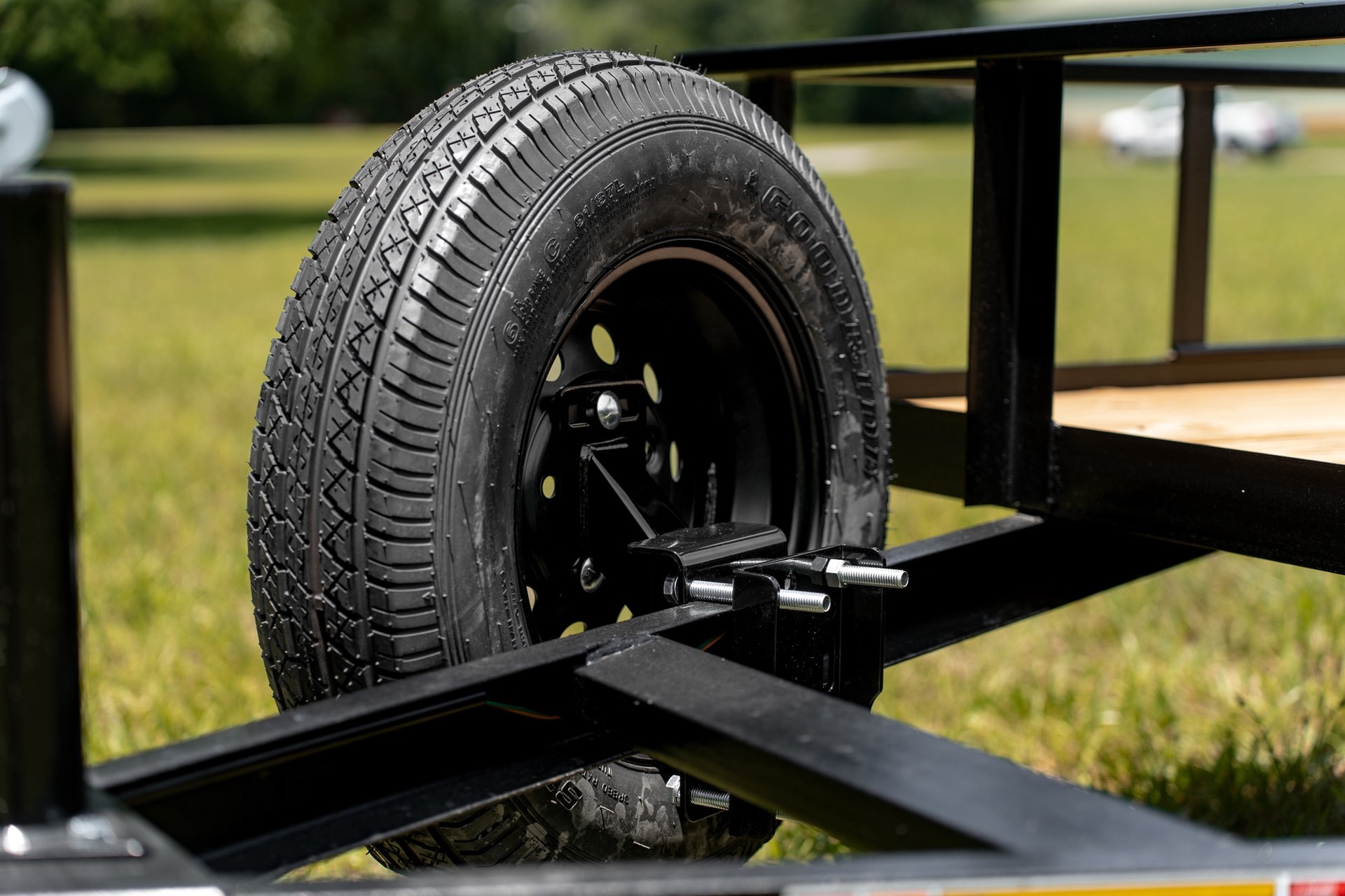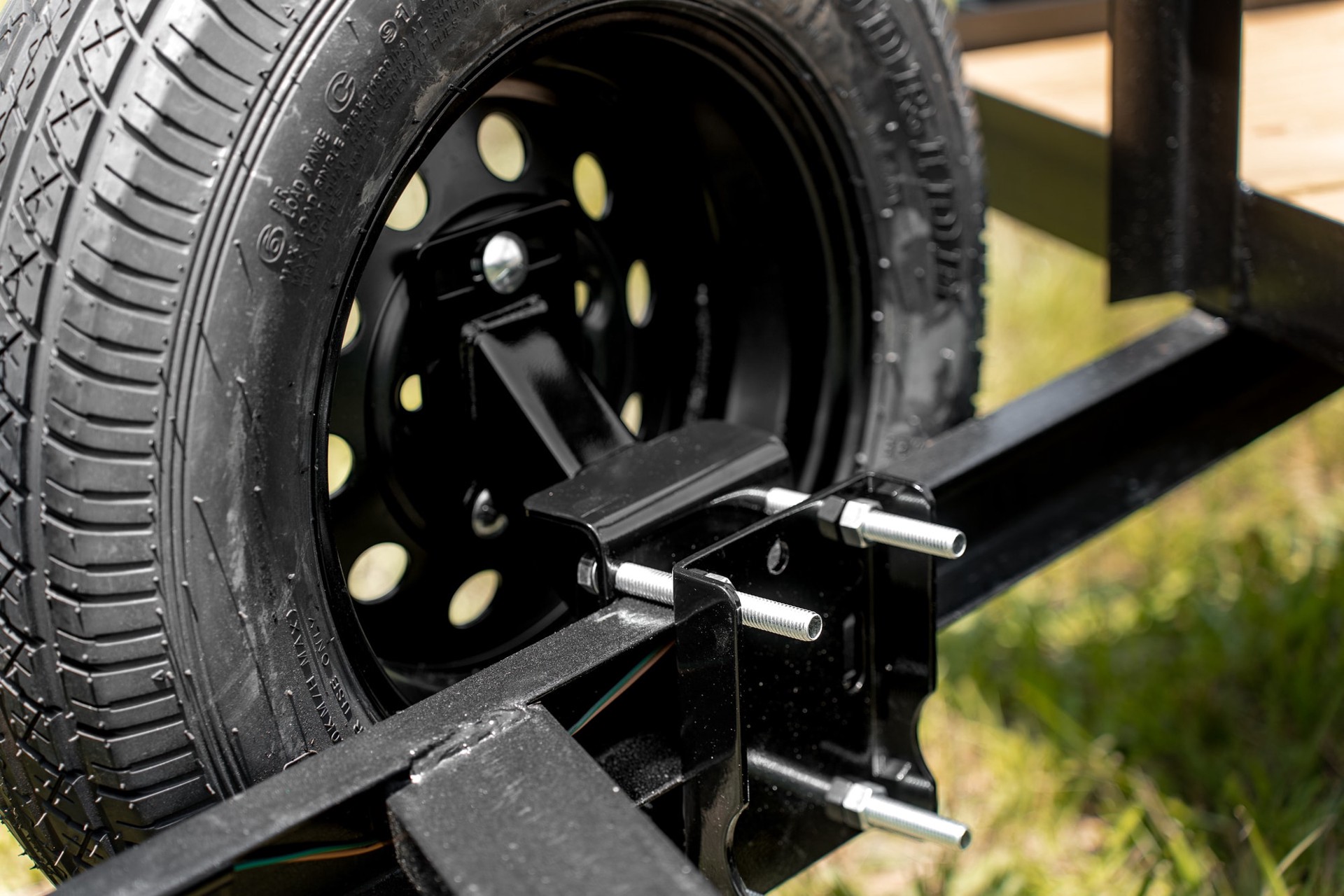 Heavy duty steel construction. Offset mounting bracket provides increased ground clearance. Fits 8-Inch to 15-Inch tire and wheel assemblies with 4-Bolt and 5-Bolt holes, 4-Inch and 4.5-Inch bolt patt…