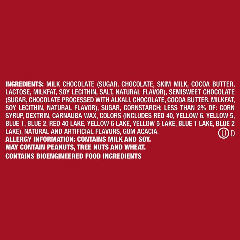 Milk Chocolate (Sugar, Chocolate, Skim Milk, Cocoa Butter, Lactose, Milkfat, Soy Lecithin, Salt, Natural Flavor), Semisweet Chocolate (Sugar, Chocolate Processed with Alkali, Chocolate, Cocoa Butter, …