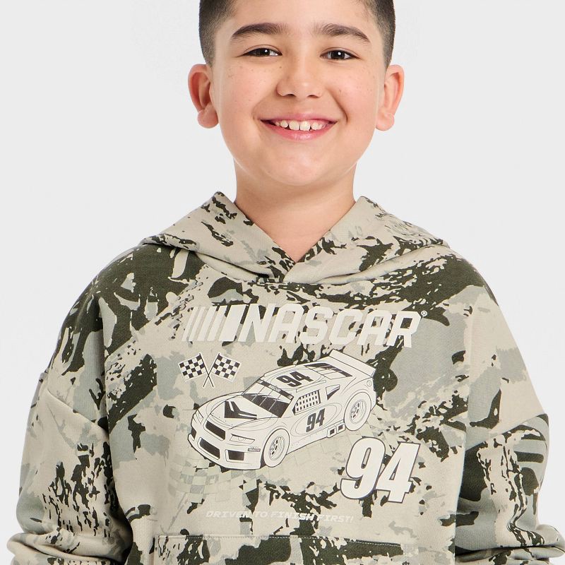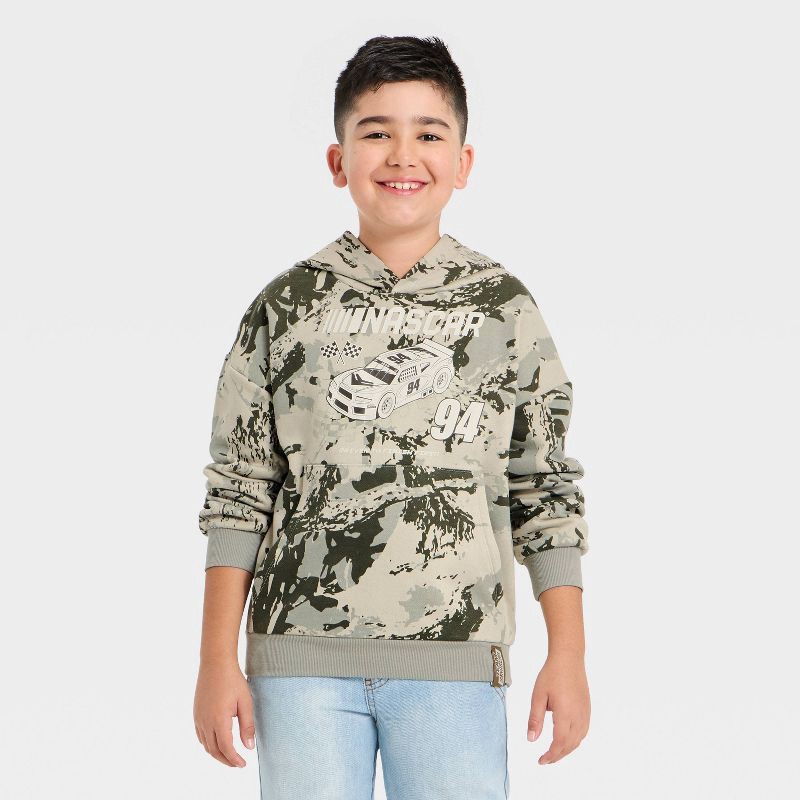Bring sporty edge to his style with this Boys' NASCAR Camoflauge Hooded Pullover Sweatshirt. Made from soft, cozy fabric, it keeps him warm and comfortable for school, outdoor play, or weekend hangout…