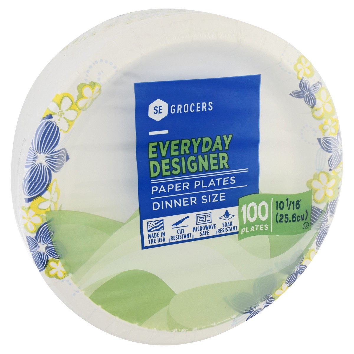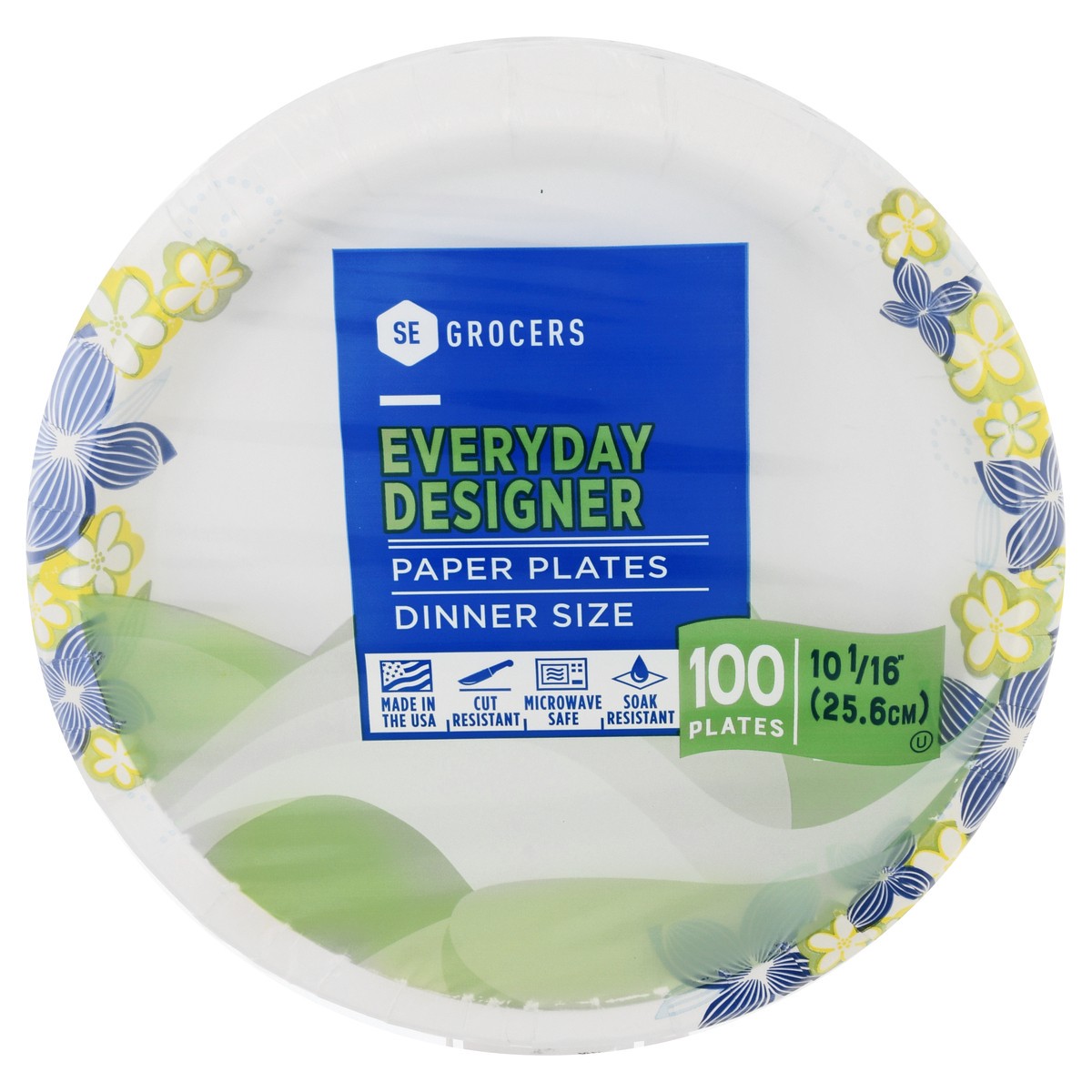 SE Grocers Paper Plates 10 1/16'' Dinner Size Heavy Duty Designer - 100 CT