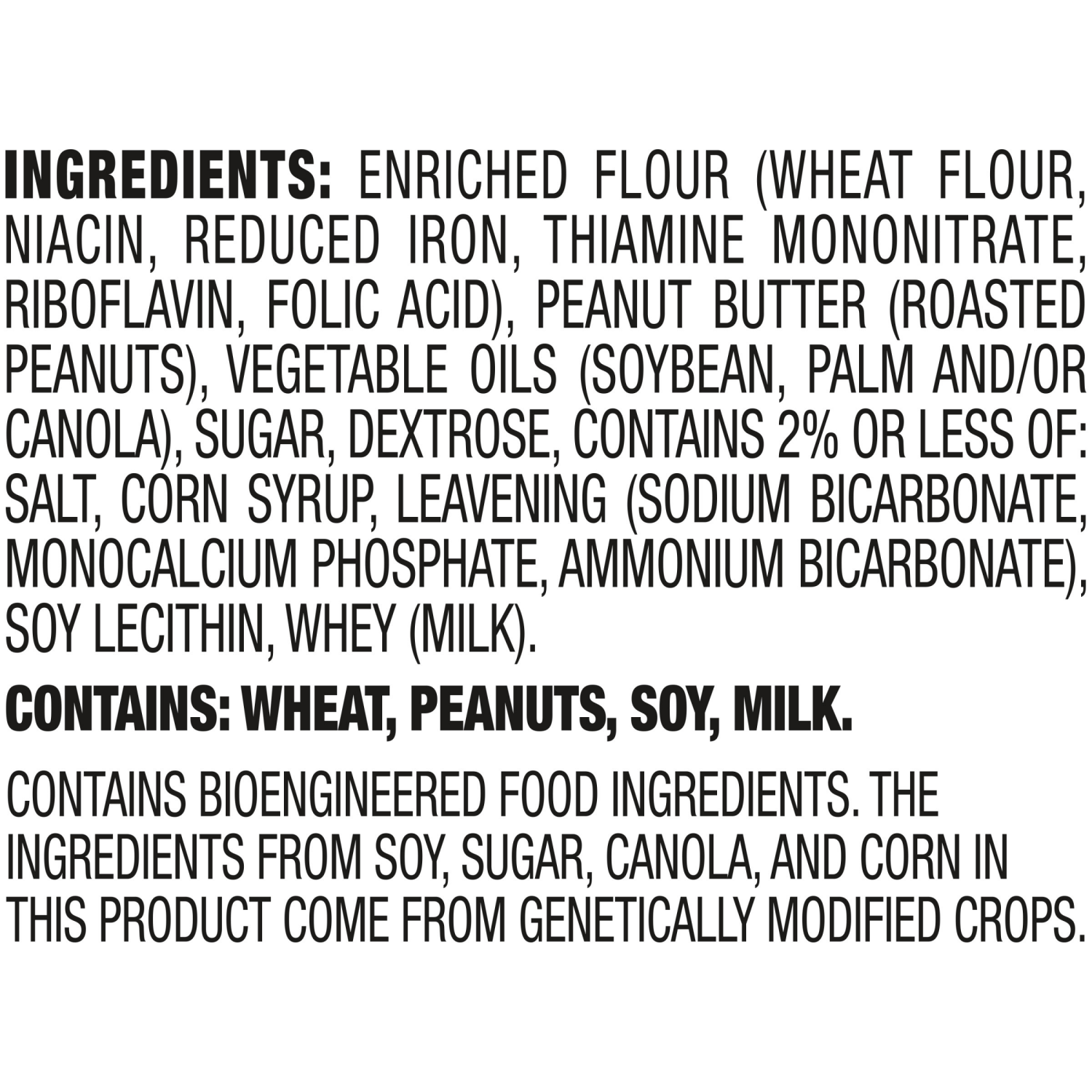INGREDIENTS: ENRICHED FLOUR (WHEAT FLOUR, NIACIN, REDUCED IRON, THIAMINE MONONITRATE, RIBOFLAVIN, FOLIC ACID), PEANUT BUTTER (ROASTED PEANUTS), VEGETABLE OILS (SOYBEAN, PALM AND/OR CANOLA), SUGAR, DEX…