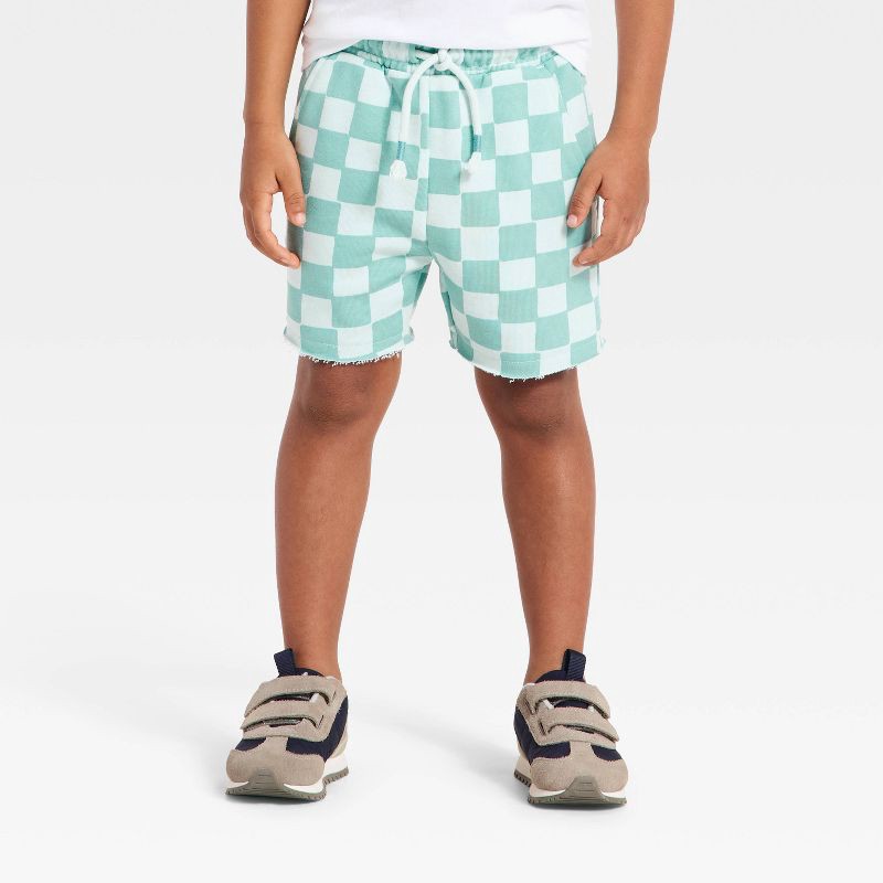 - Checkered pull-on shorts with elastic waistband and 2 side pockets