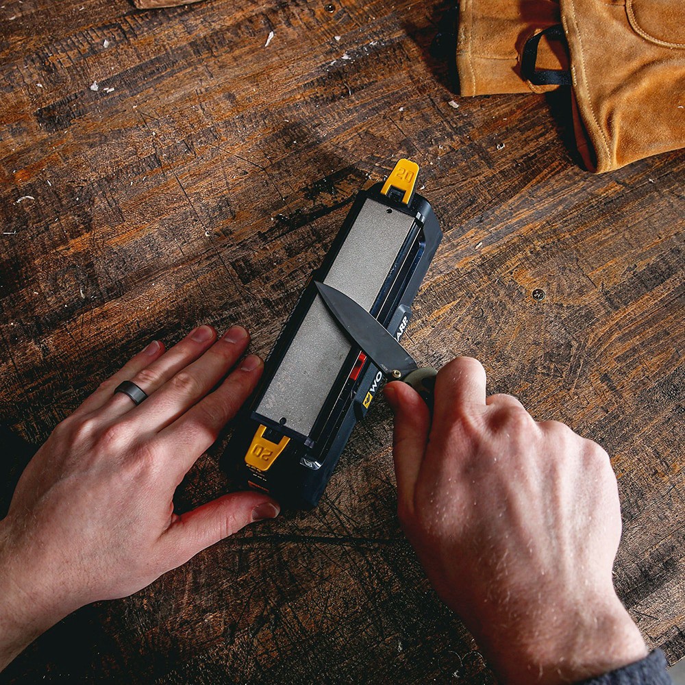 Work Sharp Benchtop Knife Sharpener- Tri-brasive Stone- Diamond/plastic- 20 and 25 Sharpening Guides