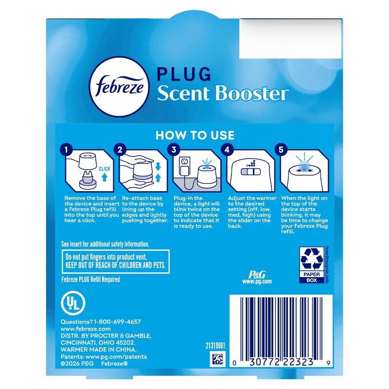 - Febreze PLUG Scent Booster continuous air freshener works with all Febreze oil refills