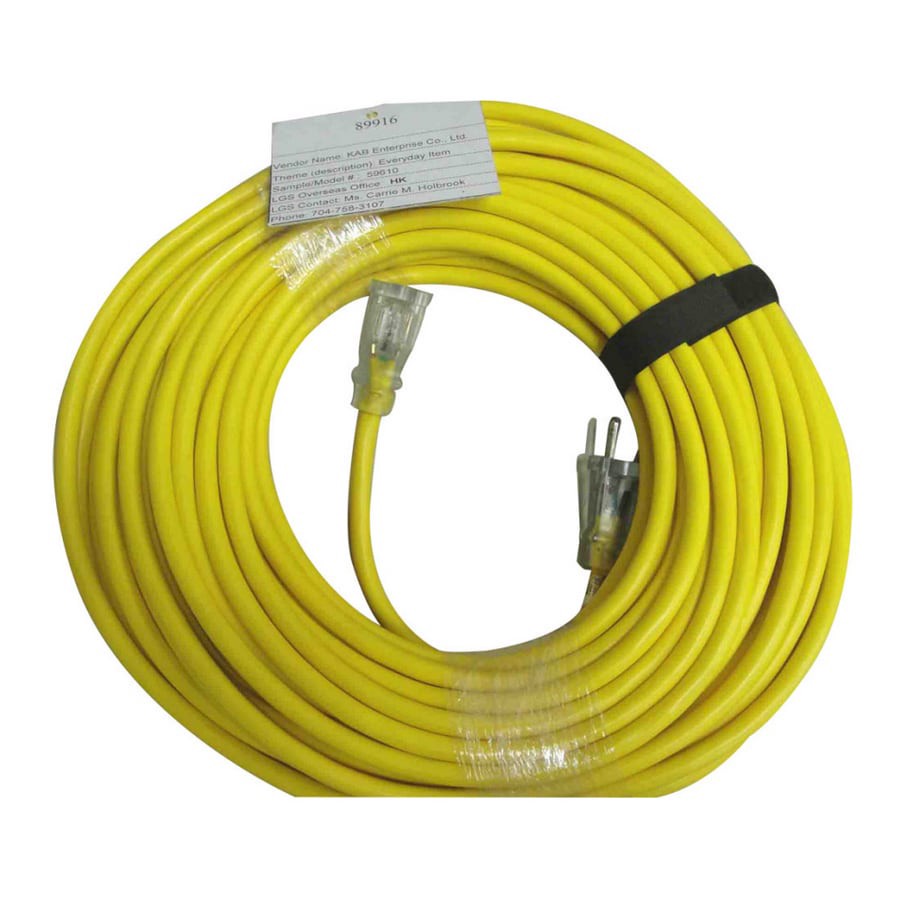 Outdoor grounded extension cord. WEATHER-RESISTANT. EXTRA FLEXIBLE - 30-50% more flexible than orange cords. Solid molded plug and receptacles. Plug: NEMA 5-15P / Connector: NEMA 5-15R. SJTW 14/3 100f…