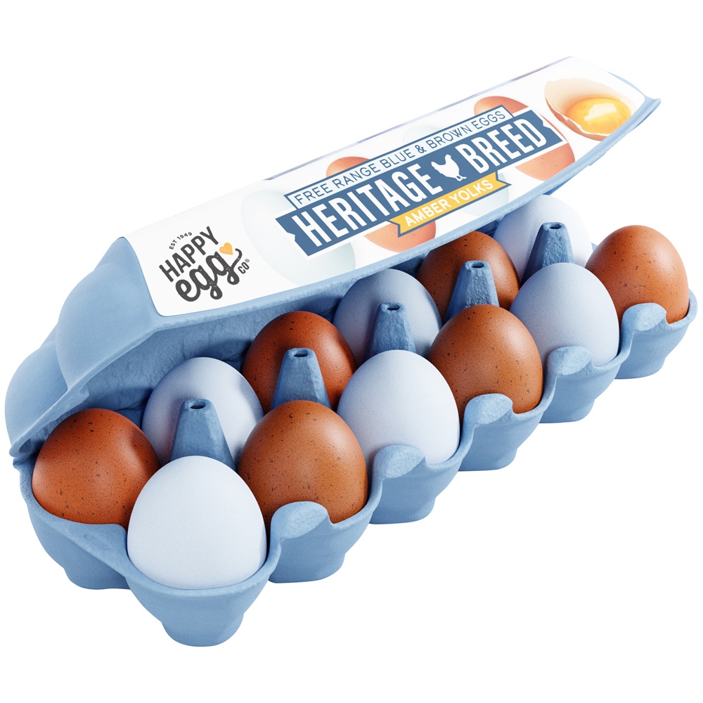 Happy Egg Heritage Breed Free Range Grade A eggs are rich in flavor and appearance. These brown and blue eggs contain plump amber yolks with a creamy flavor that will make any dish feel gourmet. There…
