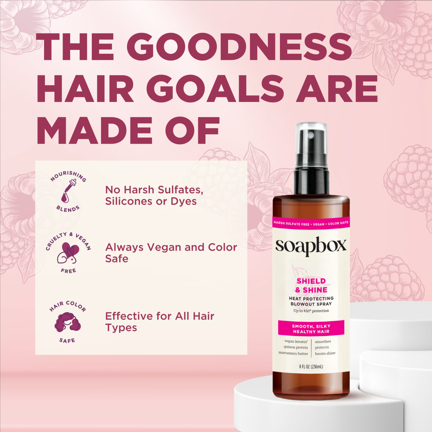 Plus up shine, protect from heat and prevent frizz, this is multi-tasking at its best! This ultimate dream trio spray is your one-stop shop for all your favorite pre-styling products! Nutrient-rich ve…