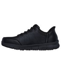 All the safety, style and comfort you need for your day deliver in Skechers Work Relaxed Fit: Nampa SR. Smooth leather-textured synthetic upper on a lace-up sporty casual slip-resistant design with cu…