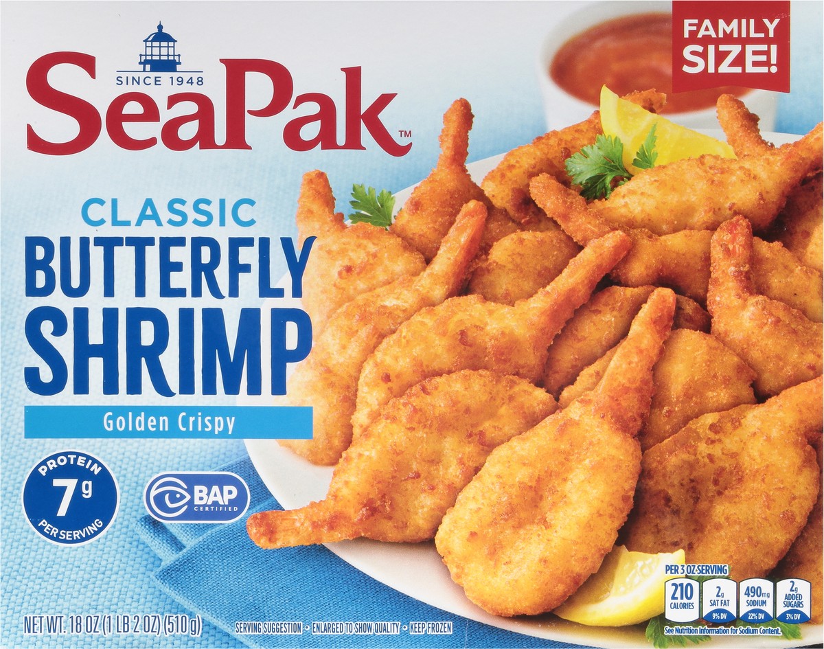 SHRIMP, BLEACHED WHEAT FLOUR, SOYBEAN OIL, ENRICHED WHEAT FLOUR (WHEAT FLOUR, NIACIN, IRON AS FERROUS SULFATE, THIAMINE MONONITRATE, RIBOFLAVIN, FOLIC ACID), WATER, WHEAT FLOUR, CONTAINS LESS THAN 2% …