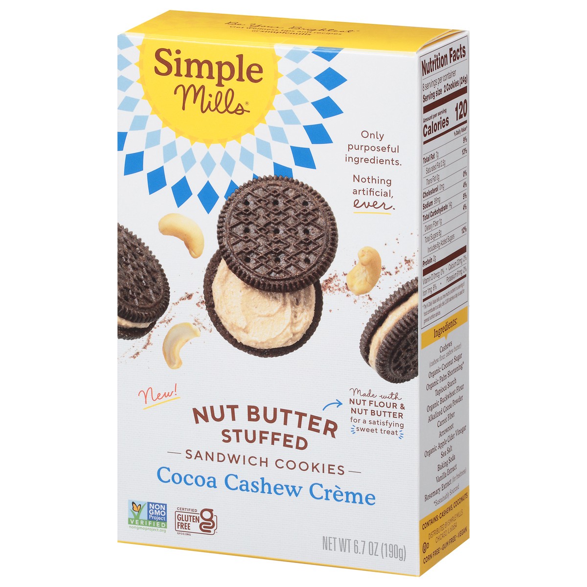 Simple Mills Nut Butter Stuffed Cocoa & Cashew Butter Sandwich Cookies 6.7 oz