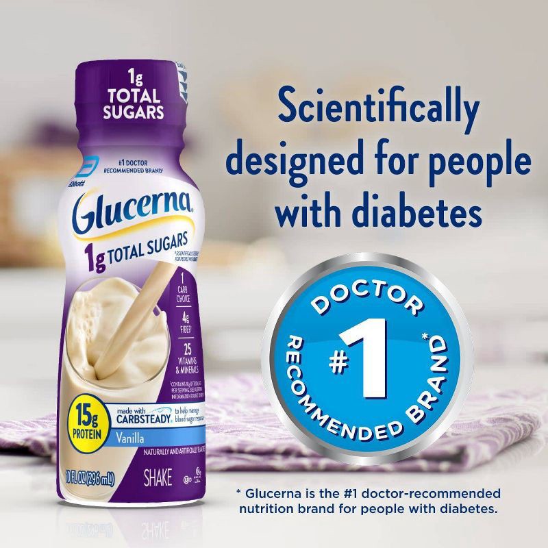 - DESIGNED AS A DIABETIC SNACK REPLACEMENT SHAKE: A Vanilla Glucerna 1g Total Sugars shake is a delicious replacement for a poor snack choice