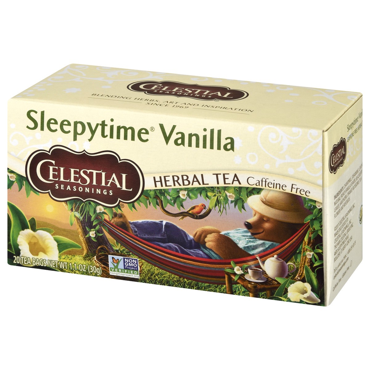 Gluten free. Caffeine free. Non GMO Project Verified. nongmoproject.org. Blending herbs, art and inspiration. Since 1969. Hain celestial. Blendmanster''s Notes. Sleepytime Vanilla: Lovers of vanilla. …