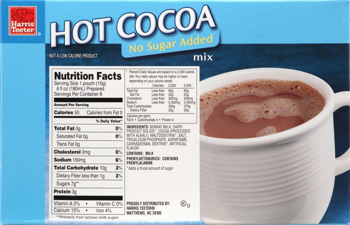 Nonfat Milk, Dairy Product Solids (Adds a Trivial Amount of Sugar), Cocoa (Processed with Alkali), Maltodextrin (Adds a Trivial Amount of Sugar), Salt, Tricalcium Phosphate, Aspartame, Carrageenan, De…