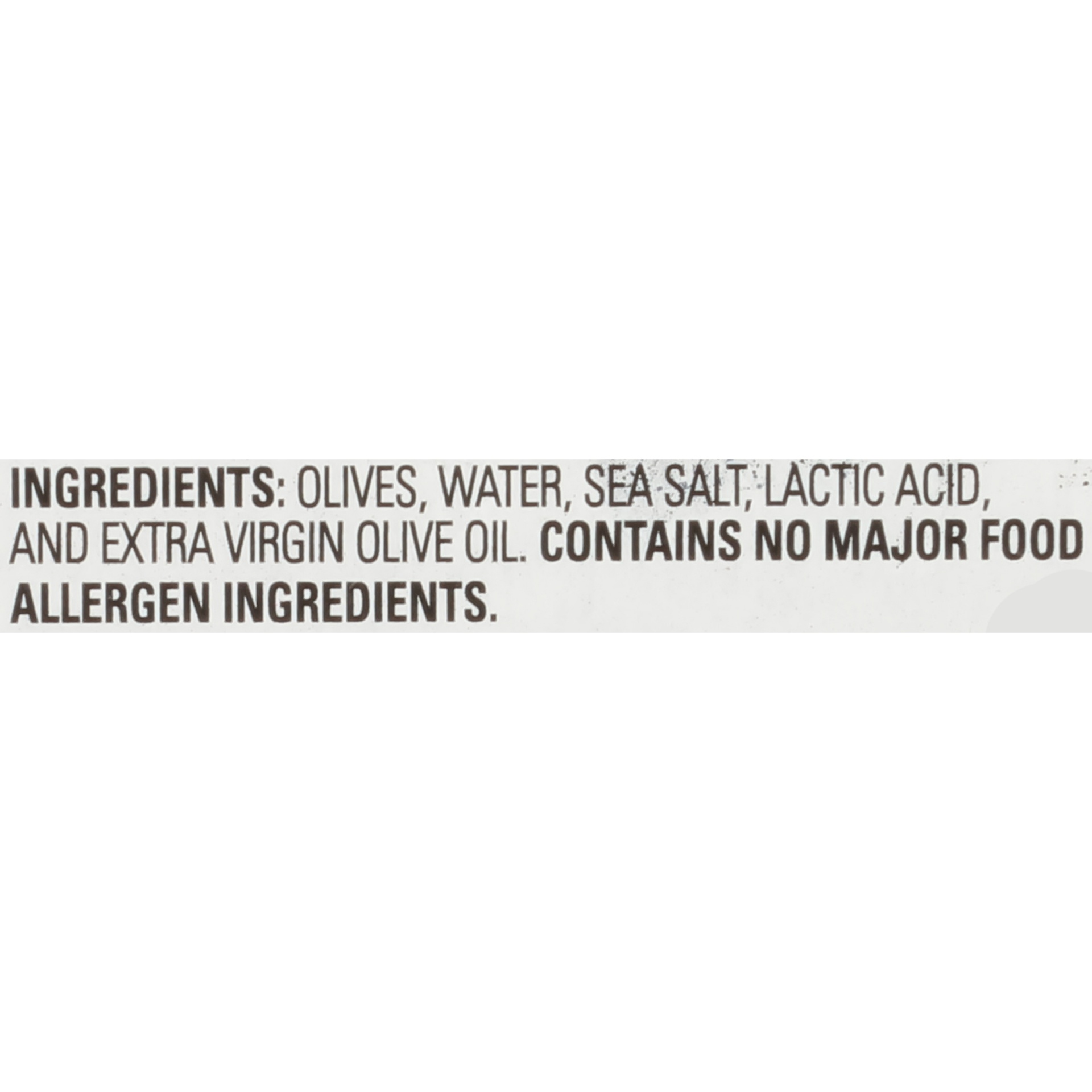 Olives, Sea Salt, Lactic Acid, and Extra Virgin Olive Oil.