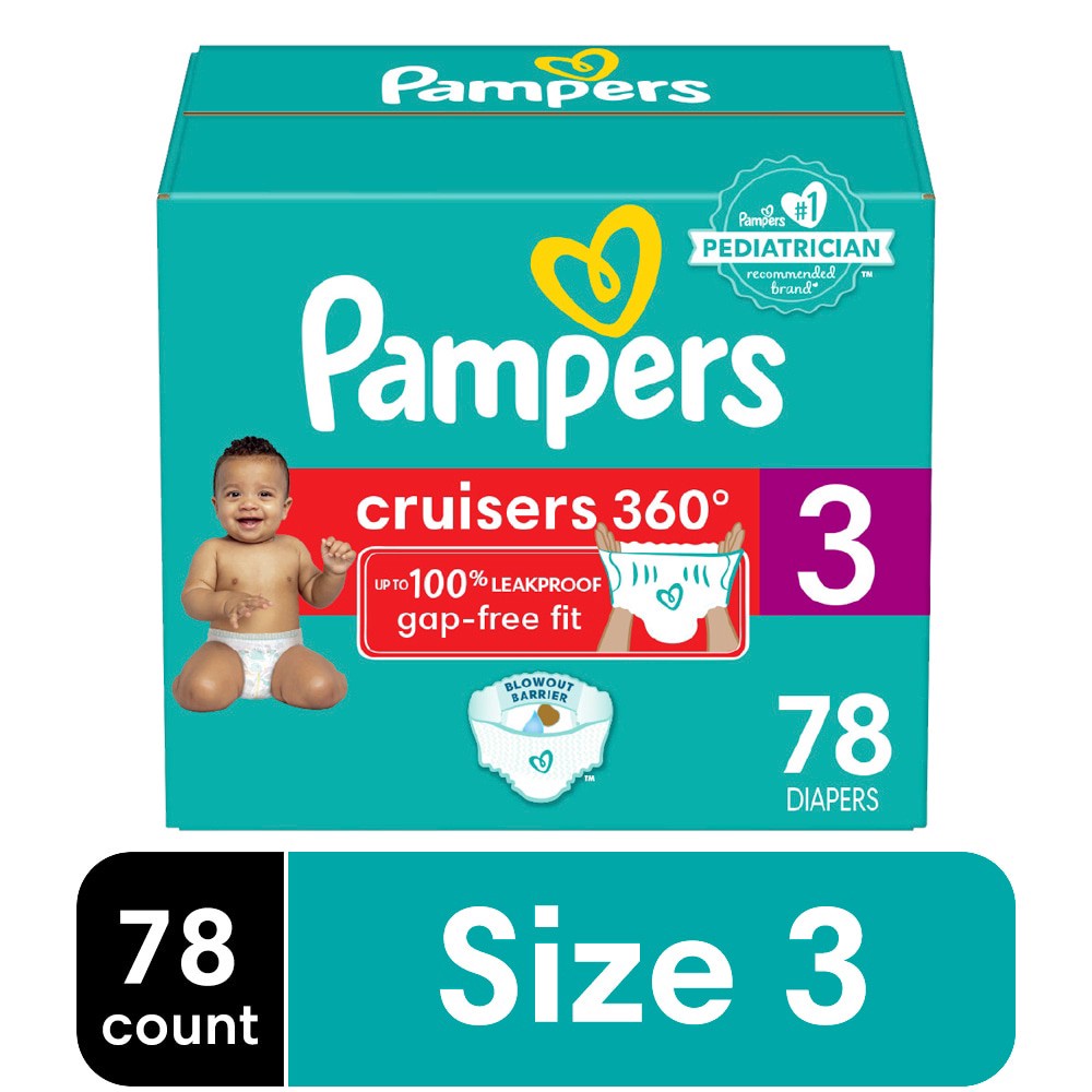 Pampers Diapers - Cruisers 360° - Size 3, 78 Count, up to 100% Leakproof Fit, Designed for Active Babies, Pull On Diaper, EZ Off Tabs Designed for Easy Changes
