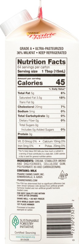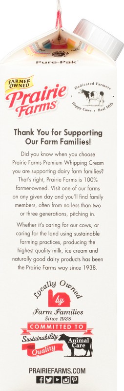 36% Milk fat. Best in class. Ultra-pasteurized. Thank you for supporting our farm families. Did you know when you choose Prairie Farms Premium Whipping Cream you are supporting dairy farm families? Th…