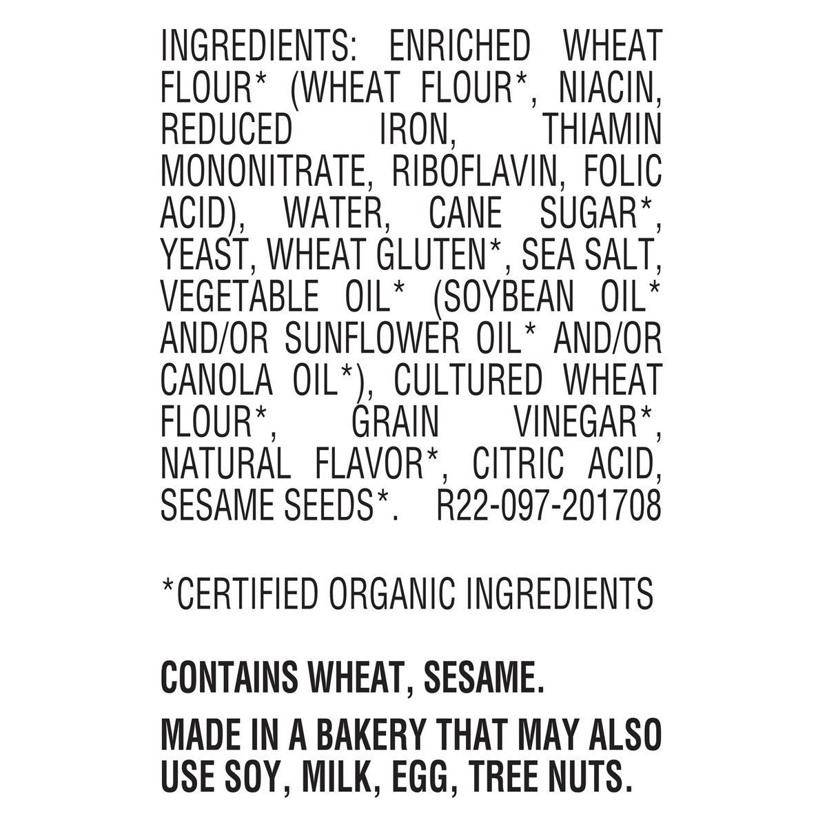 Enriched Wheat Flour* [Wheat Flour*, Niacin, Reduced Iron, Thiamin Mononitrate, Riboflavin, Folic Acid], Water, Cane Sugar*, Yeast, Contains 2% Or Less Of Each Of The Following: [Wheat Gluten*, Sea Sa…