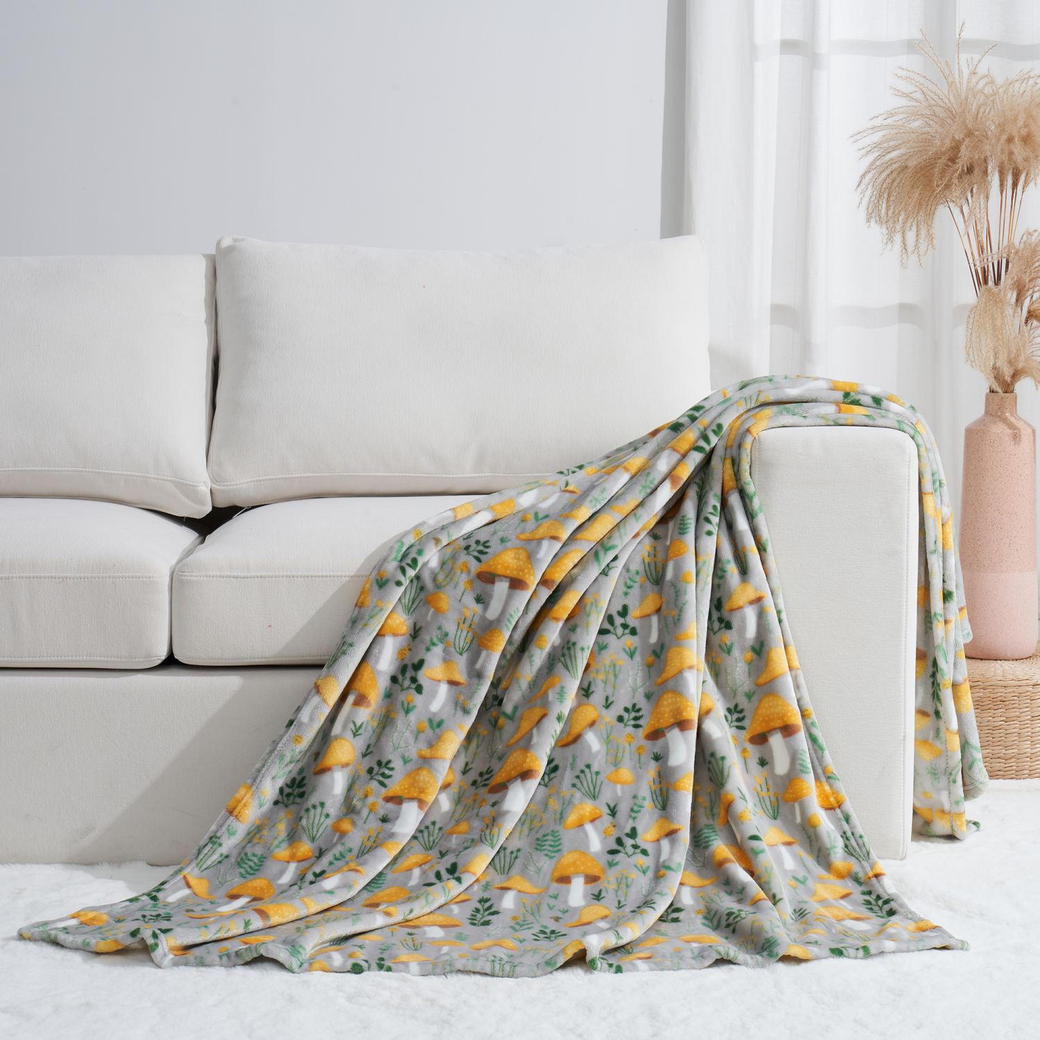 This HS PRINTED PLUSH THROW MUSHROOM 50X70 is the perfect blend of whimsy and comfort. The vibrant mushroom print brings a touch of nature's playfulness to any room. It turns ordinary spaces into extr…