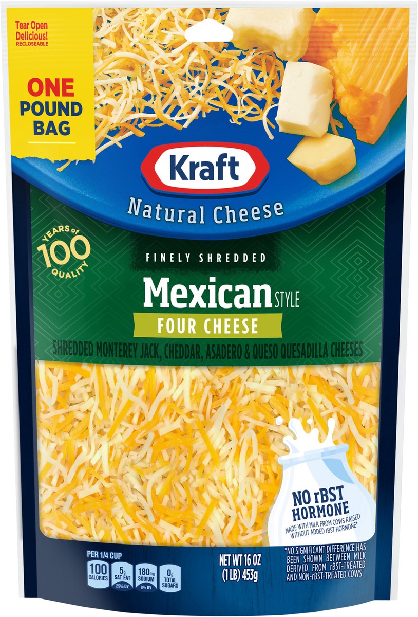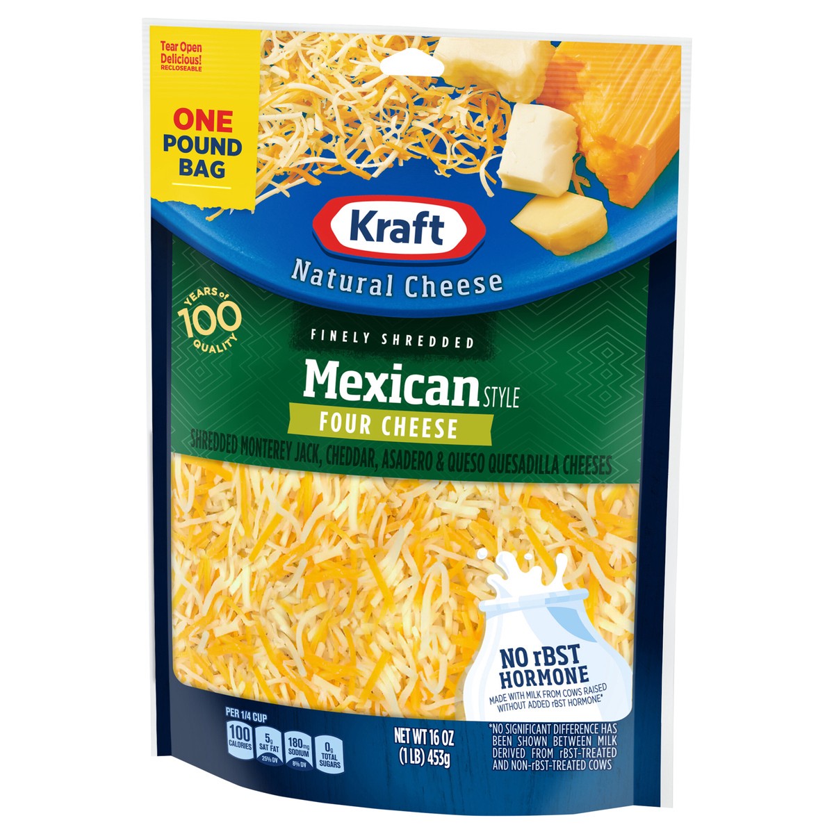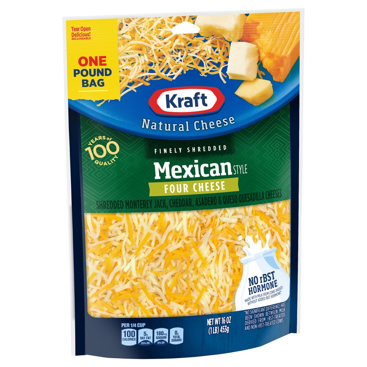 Kraft Mexican Style Four Cheese Shredded Cheese, 16 oz Bag