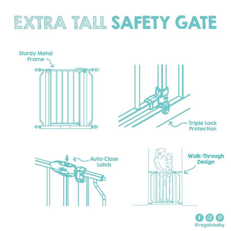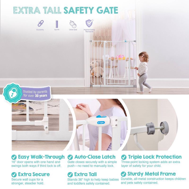 The Regalo® Extra Tall Safety Gate is the perfect tool for keeping your little one and your home safe.The simple all-metal design delivers the protection you need for your little one while simply blen…