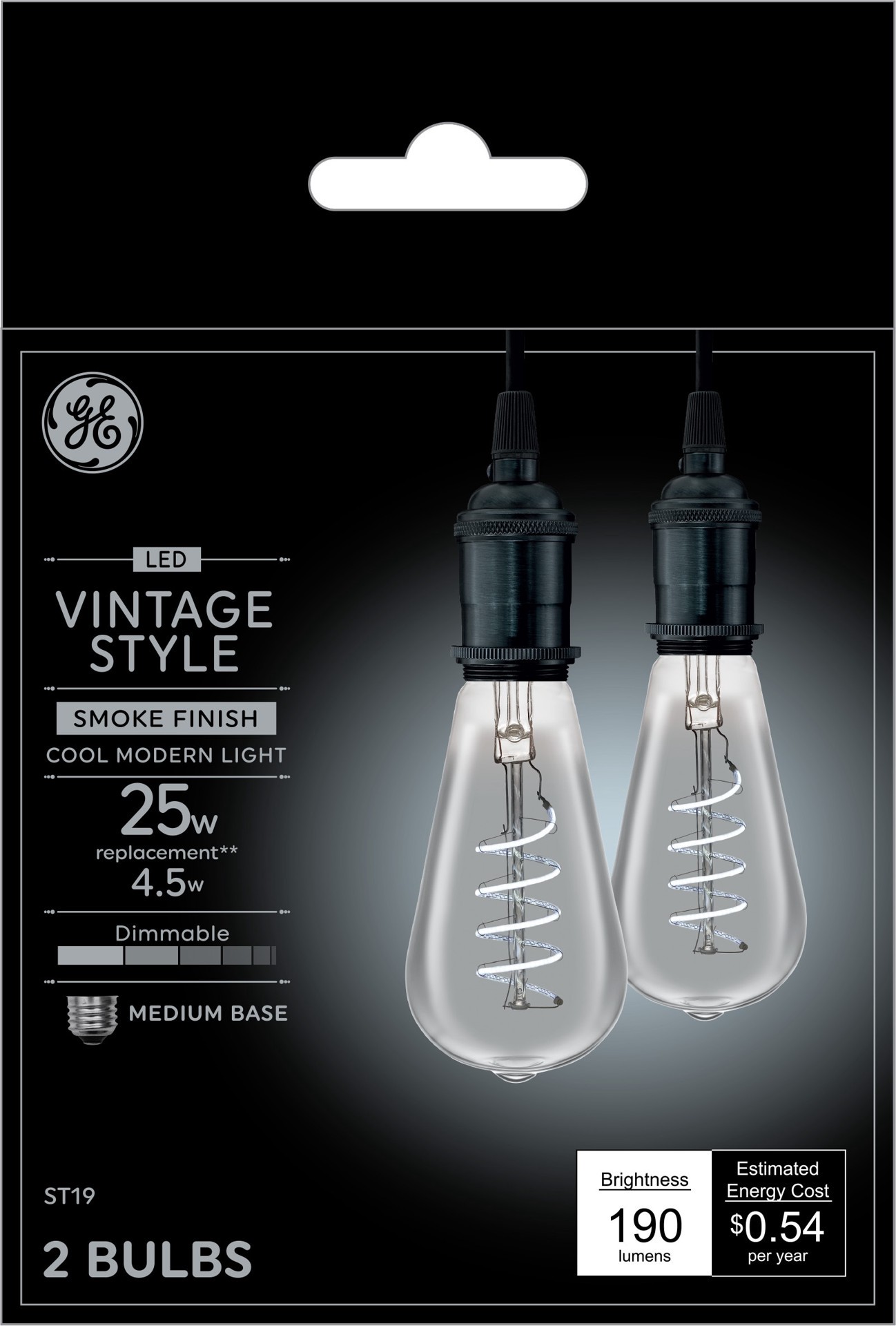GE Vintage Smoke 25 -Watt EQ ST19 Daylight Medium screw base E26 Dimmable LED Decorative Light Bulb 2 -Pack
