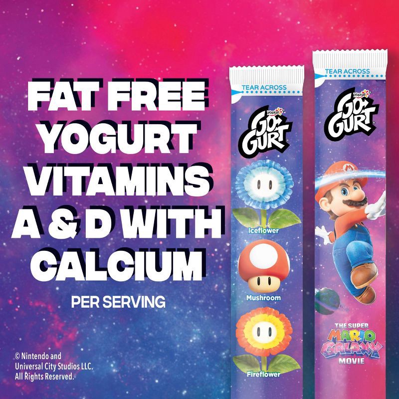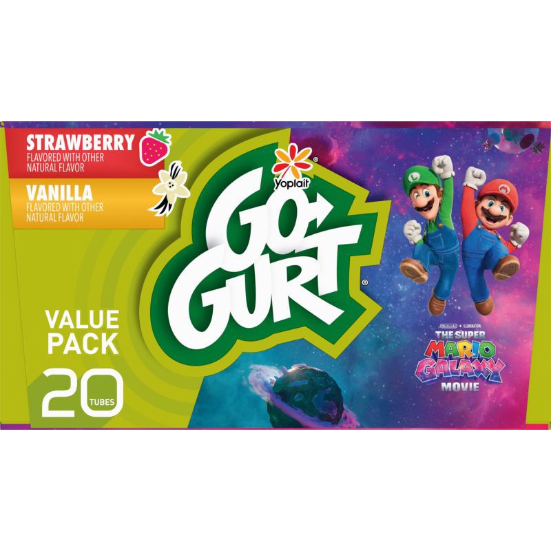 - CONTAINS: One 40 oz carton of Go-GURT The Super Mario Galaxy Movie, Strawberry and Vanilla, Value Pack, 2 oz Yogurt Tubes, 20 Ct