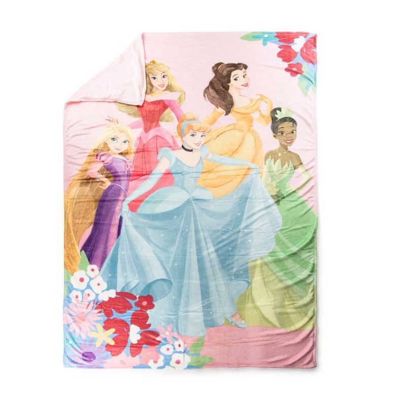 Transform bedtime into a royal movie with this Disney Princess bed blanket, measuring 90" x 62". Featuring Cinderella, Belle, Aurora, Tiana, and Rapunzel in a vibrant, enchanting design, this 100% pol…