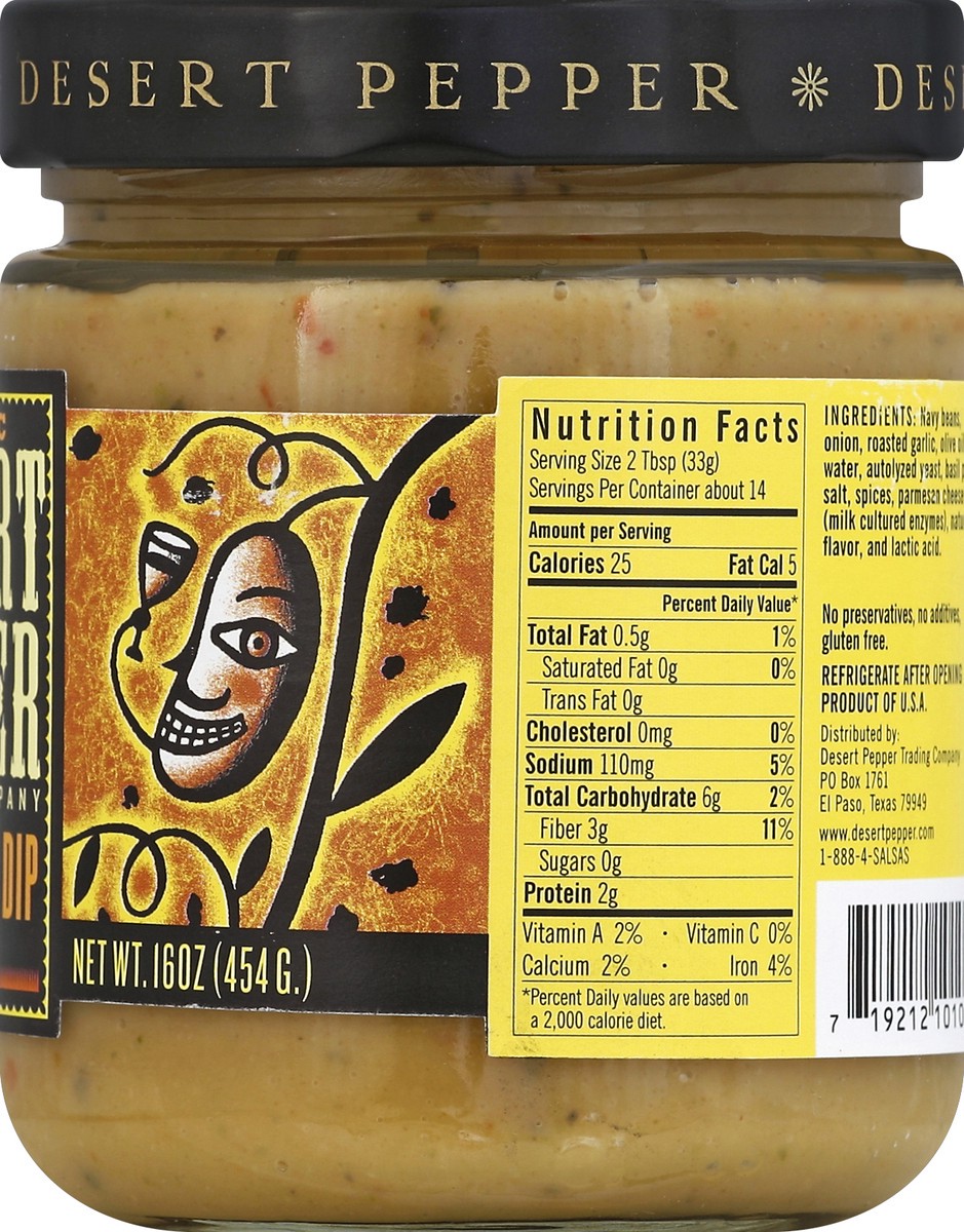 Navy Beans, Onion, Roasted Garlic, Olive Oil, Water, Autolyzed Yeast, Basil Paste, Salt, Spices, Parmesan Cheese (Milk Cultured Enzymes), Natural Flavor, and Lactic Acid.