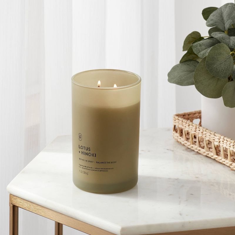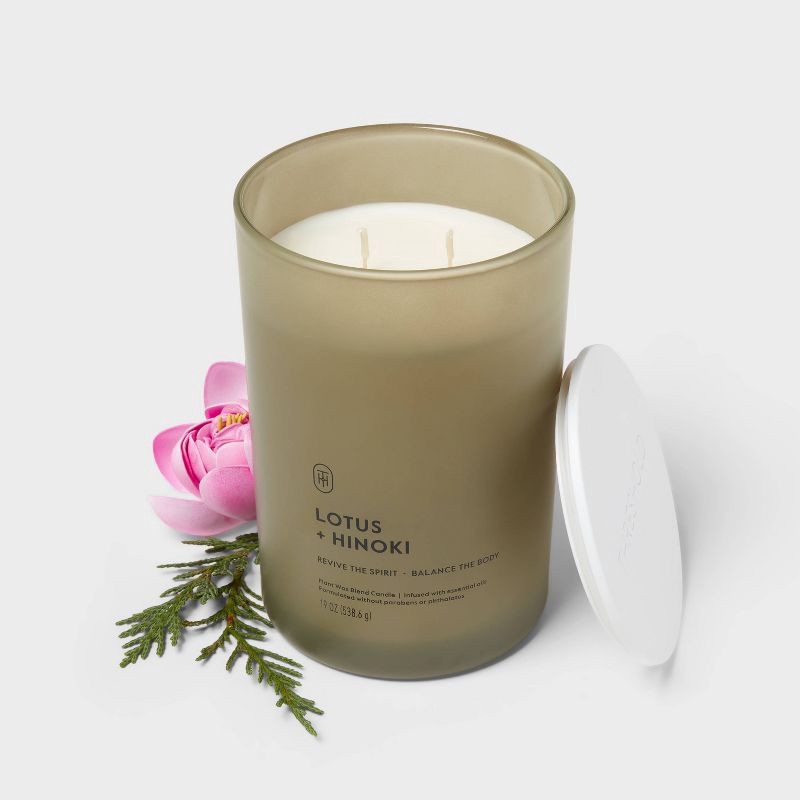 2 Wick Glass Lotus and Hinoki Jar Candle 19oz - Threshold™
