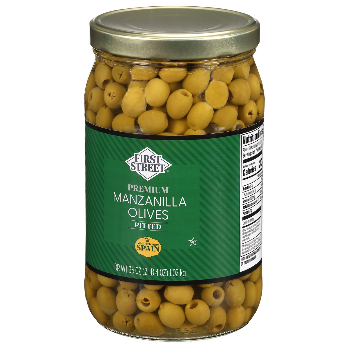 Green Olives, Water, Salt, Citric Acid, Ascorbic Acid.