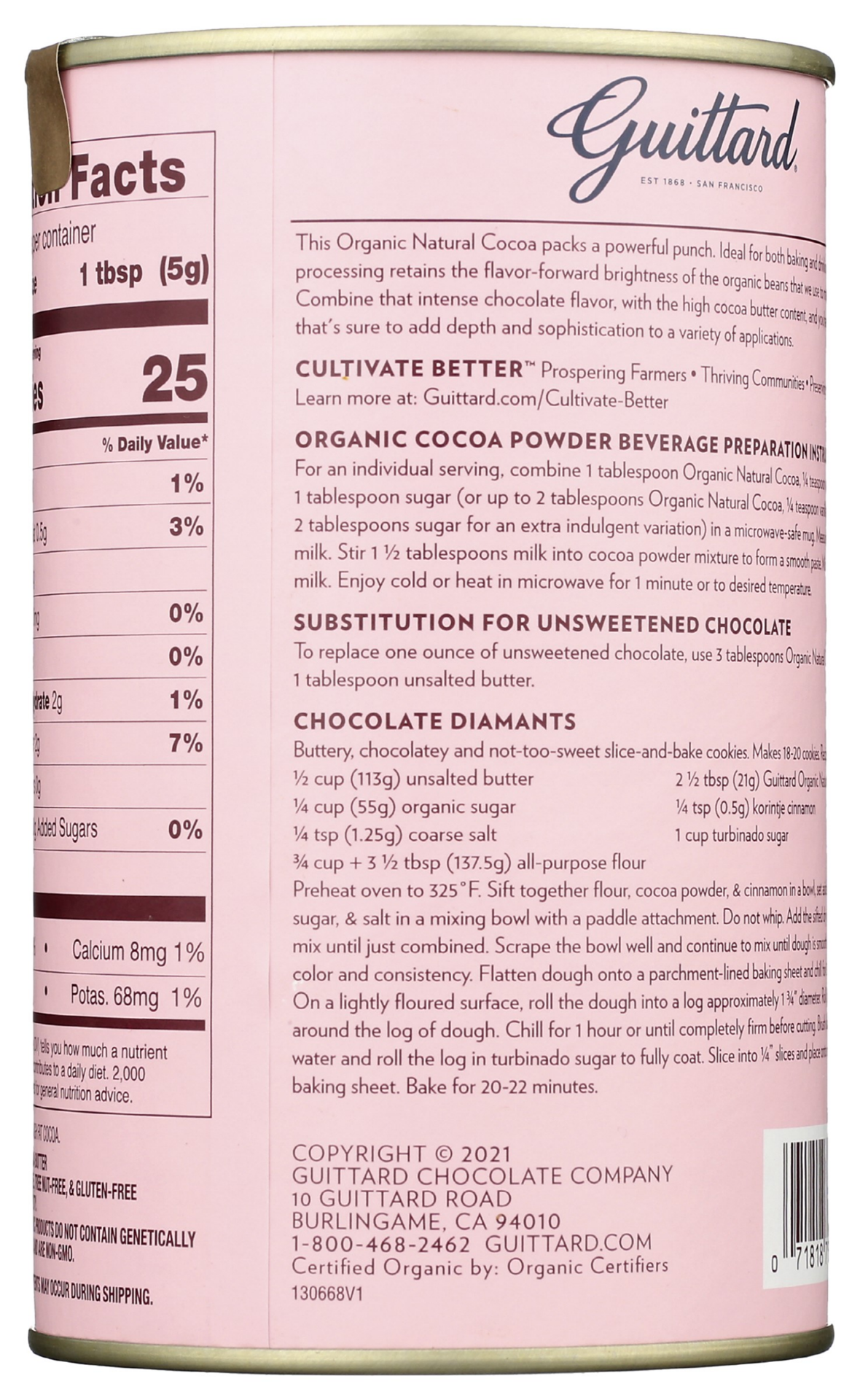 Guittard 100% Cacao Unsweetened Organic Natural Cocoa Powder