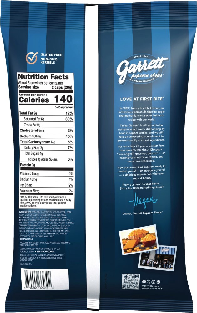 Popcorn, Coconut Oil (Coconut Oil, Beta Carotene (for Color)), Cheddar Cheese (Pasteurized Milk, Cheese Culture, Salt, Enzymes), Butter (Cream, Salt), Salt, Disodium Phosphate, Lactic Acid, Extractive…