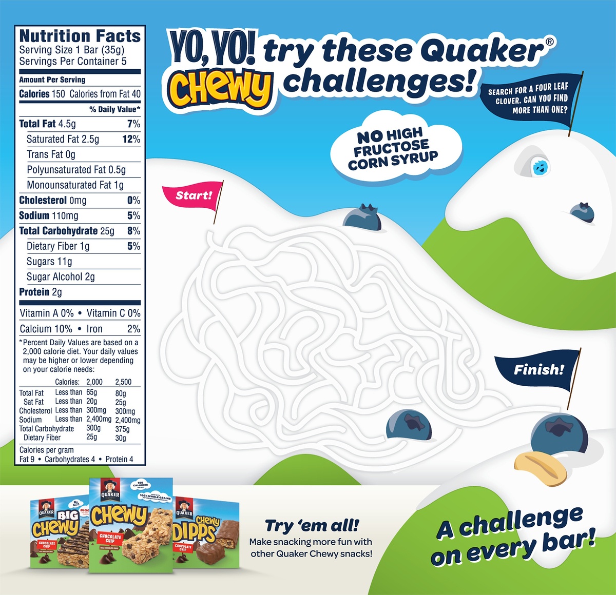 Naturally and artificially flavored. Est. 1877. 12 g whole grains. No high fructose corn syrup. Per Bar: 150 calories; 2.5 g sat fat (12% DV); 115 mg sodium (5% DV); 11 g sugars. Fuel your day. The wh…