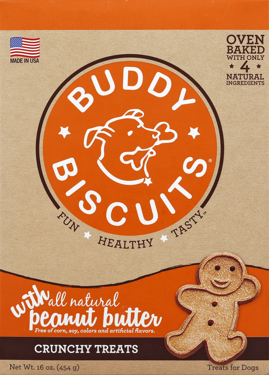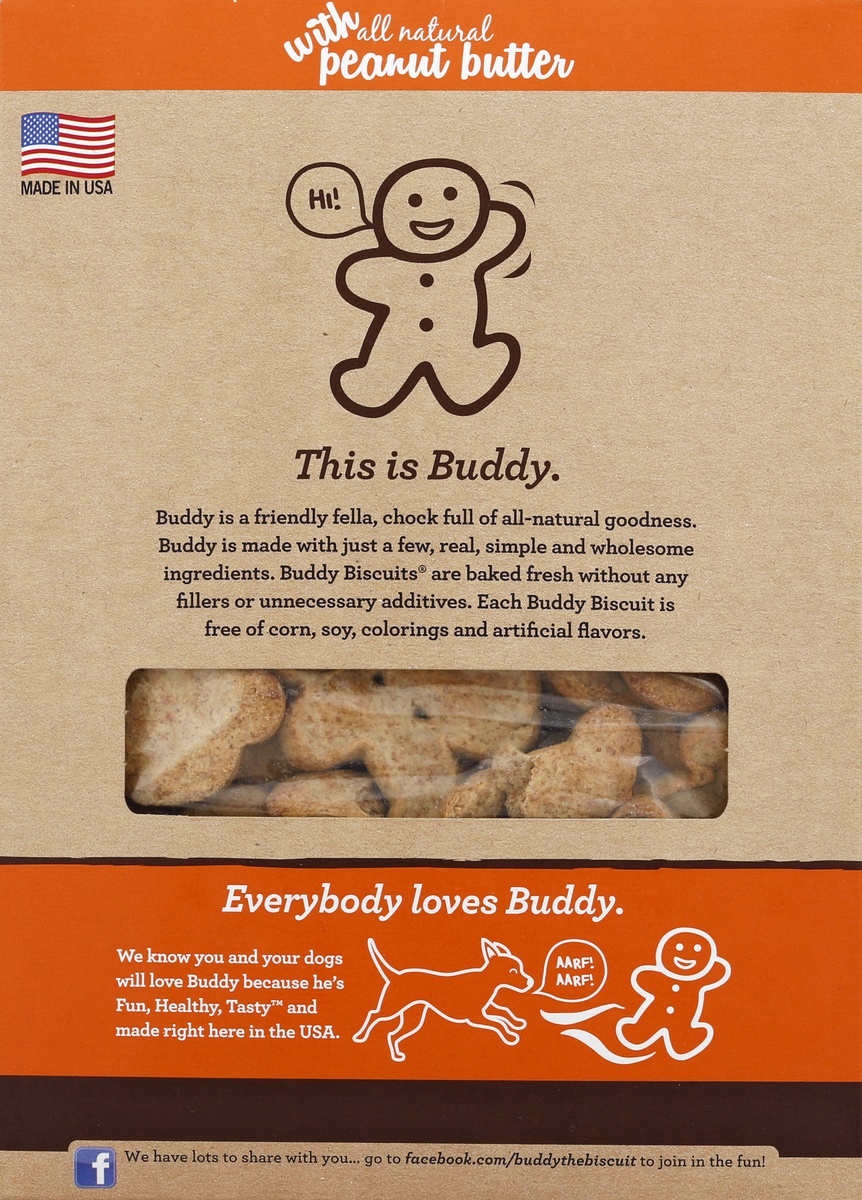 Buddy Biscuits® dog treats will put a smile on your dog's face. Oven baked goodness with natural peanut butter, cooked in cute gingerkid shapes with just a few simple and natural ingredients, Buddy Bi…