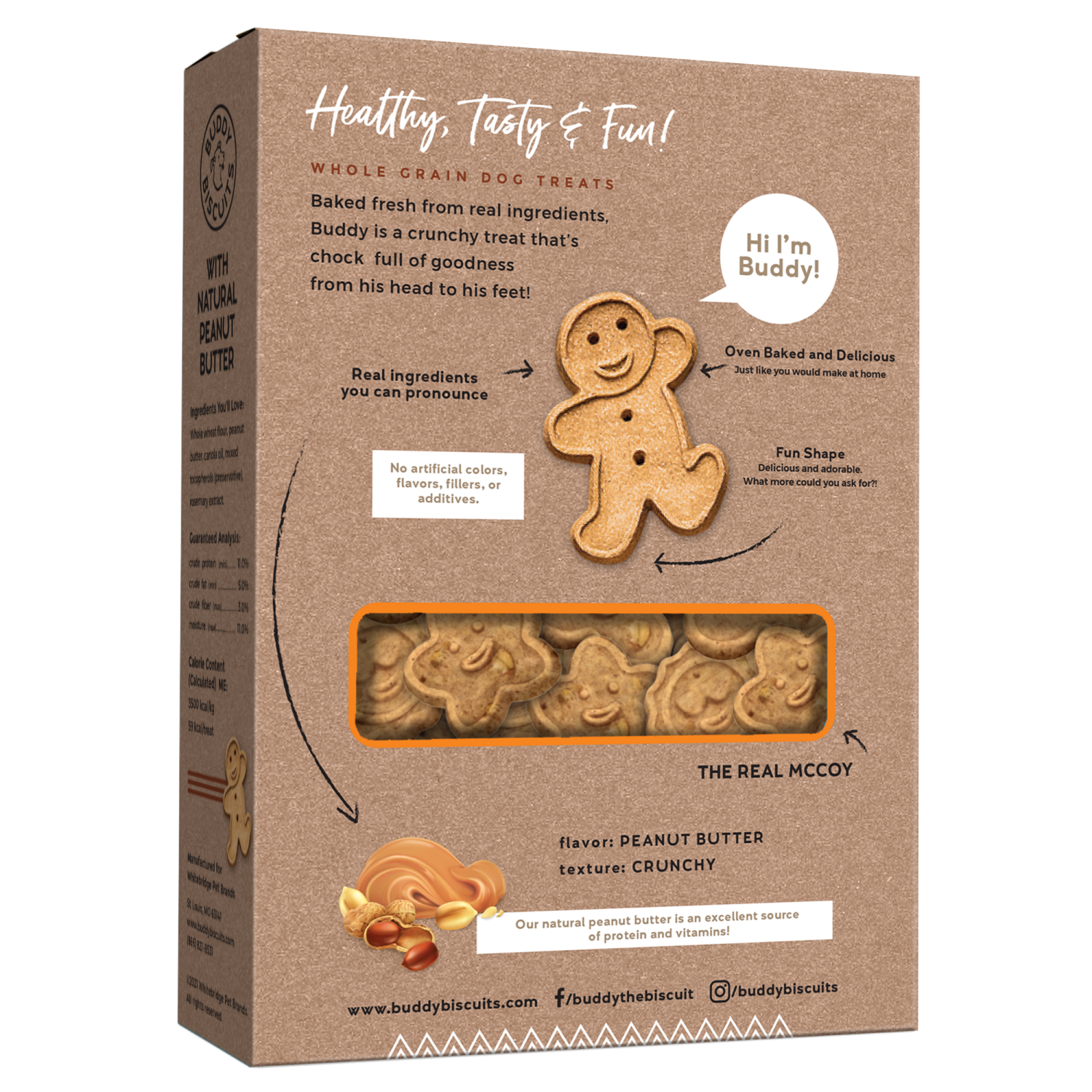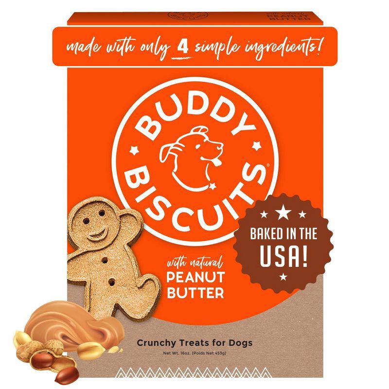 Buddy Biscuits® dog treats will put a smile on your dog's face. Oven baked goodness with natural peanut butter, cooked in cute gingerkid shapes with just a few simple and natural ingredients, Buddy Bi…