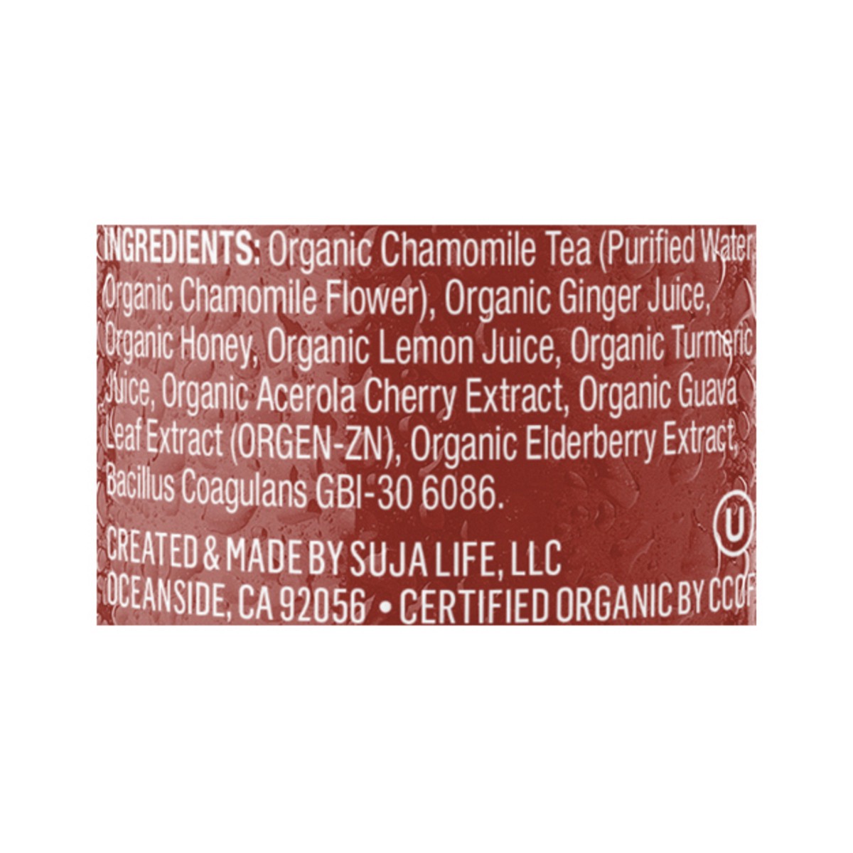 Organic Chamomile Tea (Purified Water, Organic Chamomile Flower) Organic Apple Juice Organic Blueberry Puree Organic Ginger Juice Organic Honey Organic Lemon Juice Organic Tart Cherry Concentrate Orga…