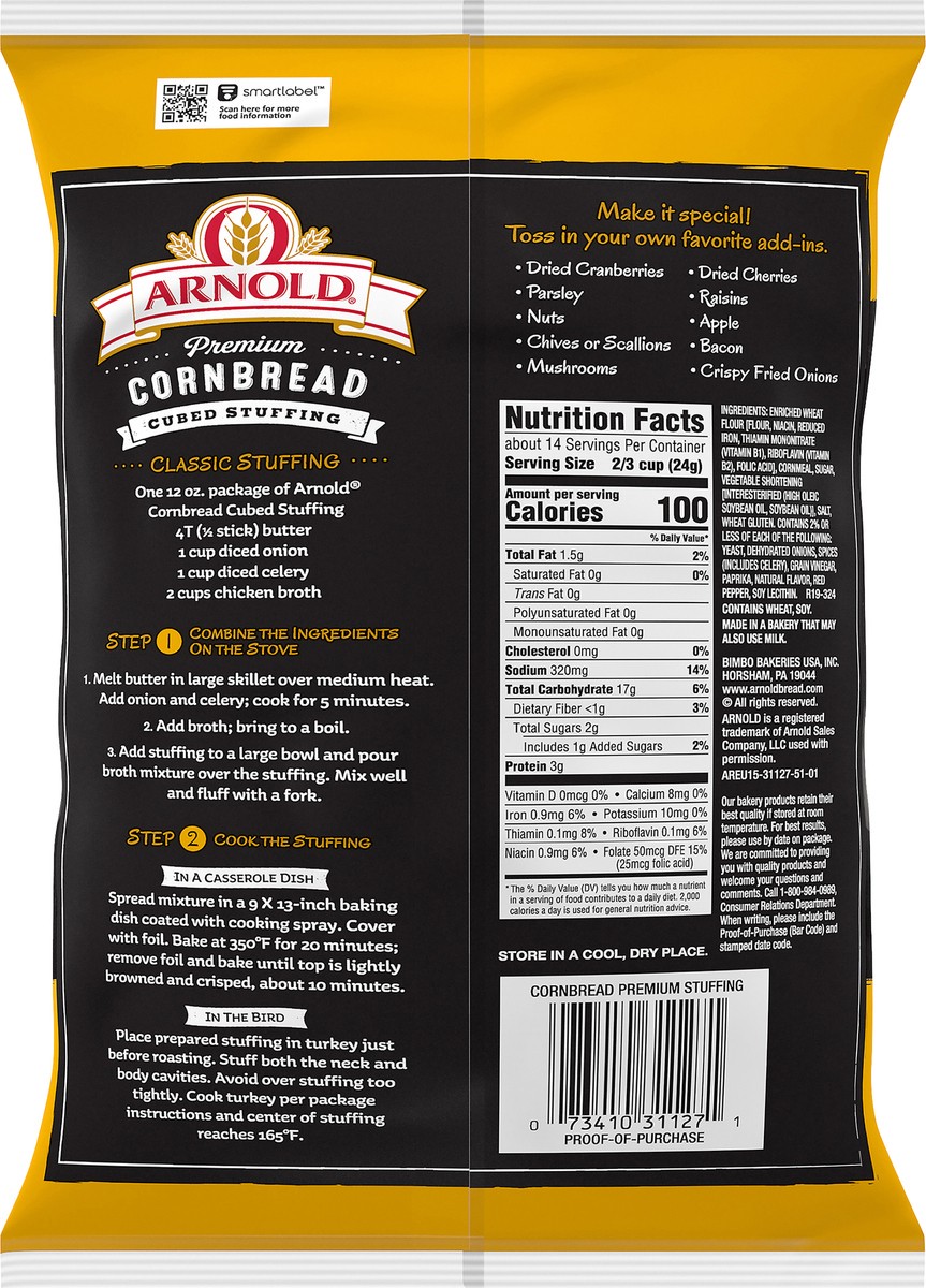 Arnold Cornbread Cubed Stuffing - 12 Oz