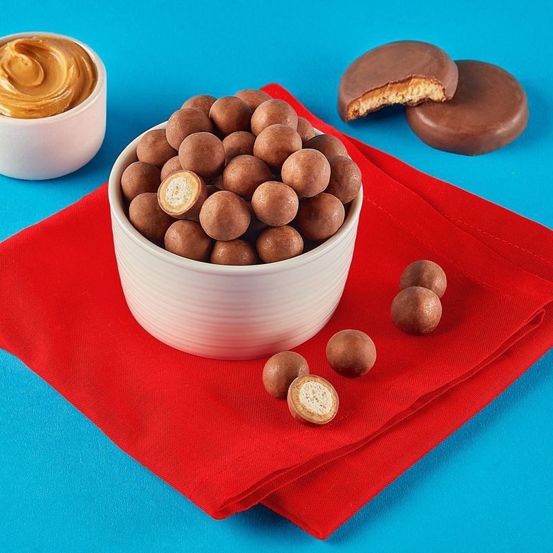 Peanut Butter Flavored Coating (Peanut Flour, RSPO Palm Kernel Oil, Sugar, Nonfat Milk Powder, Peanut Butter [Roasted Peanuts, Sugar, Hydrogenated Vegetable Oil {Cottonseed, Soybean, Rapeseed}, Salt],…