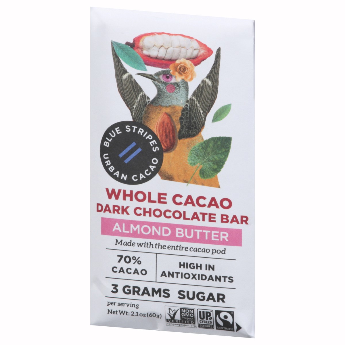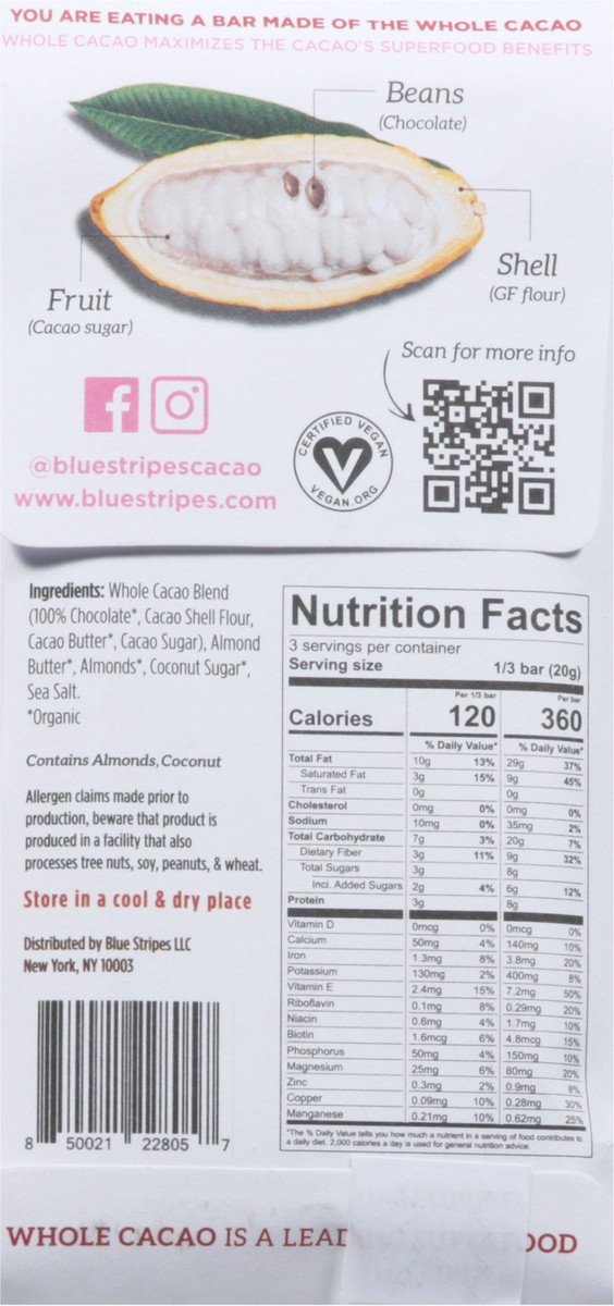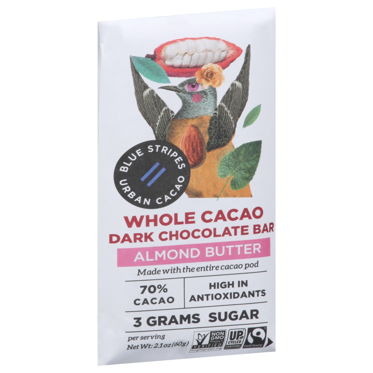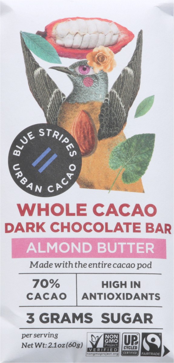 Blue Stripes Whole Cacao Dark Almond Butter Chocolate Bar 2.1 oz