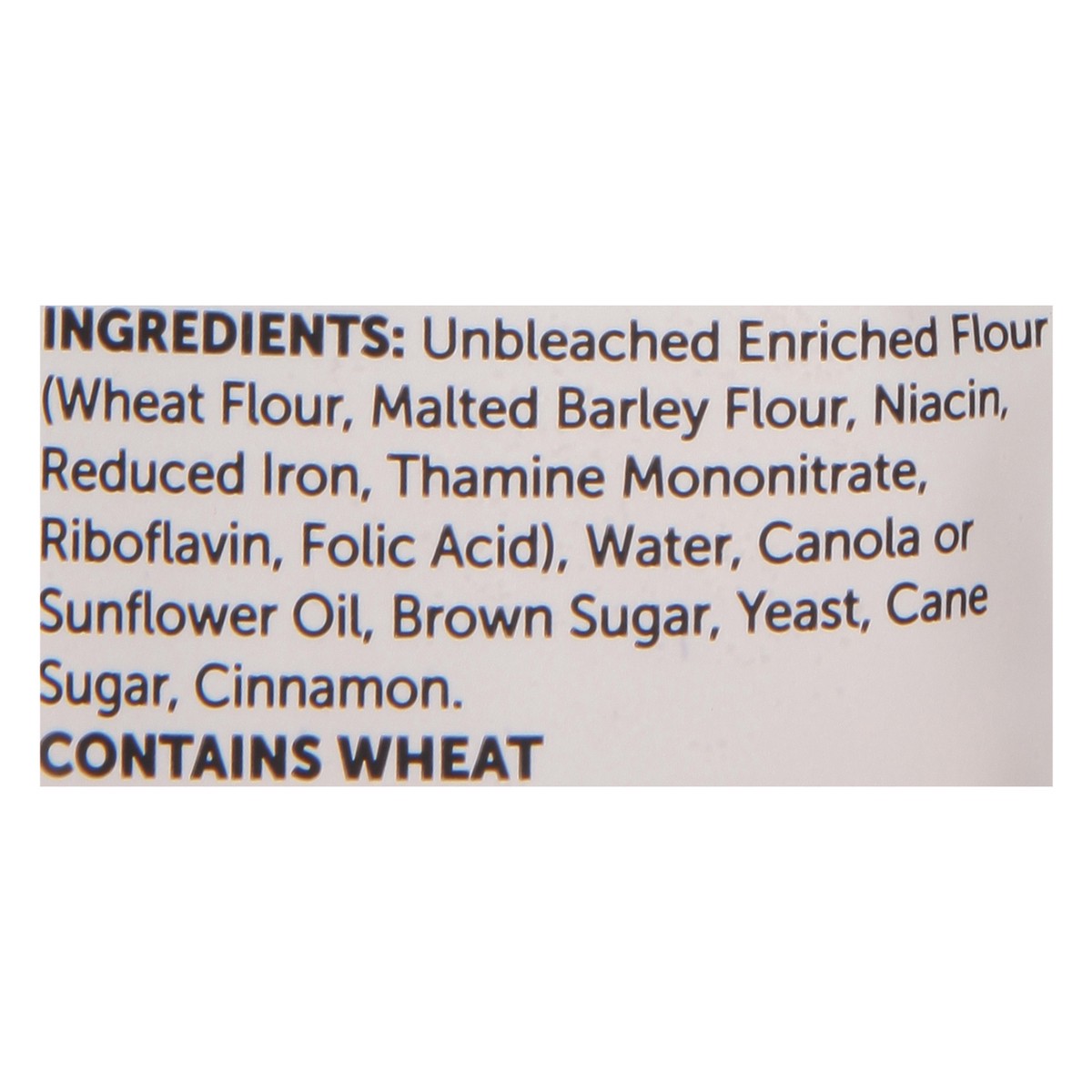 Unbleached Enriched Flour (Wheat Flour, Malted Barley Flour, Niacin, Reduced Iron, Thiamine Mononitrate, Riboflavin, Folic Acid), Water, Canola or Sunflower Oil, Brown Sugar, Yeast, Cane Sugar, Cinnam…