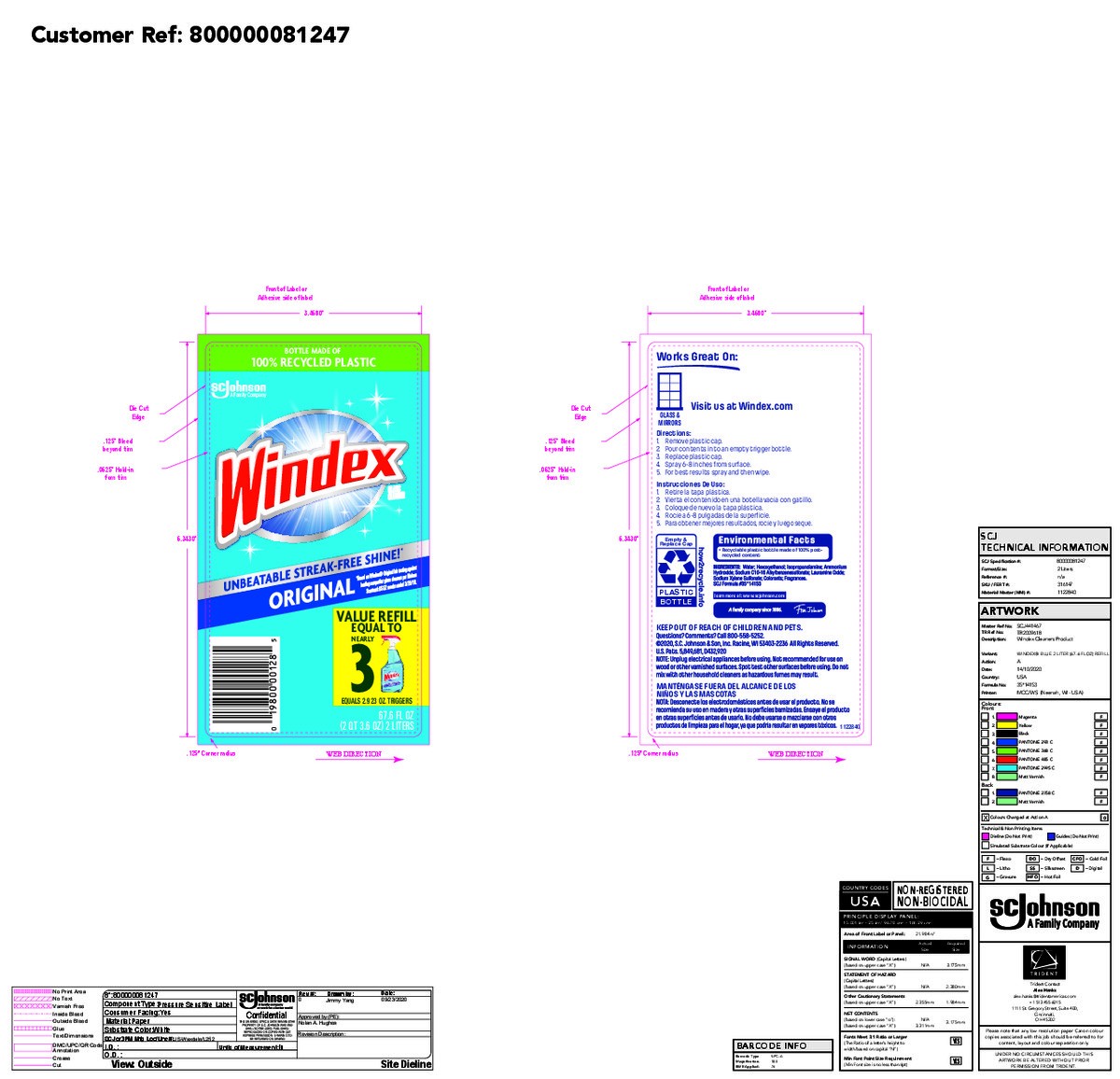 Water; Hexoxyethanol: Isopropanolamine; Ammonium Hyd Sodium C10-16 Alkylbenzenesulfonate, Lauramine Oxide; Sodium Xi/Ene Sultanate; Colorants: Fragrances. SCJ Formula #3514153.