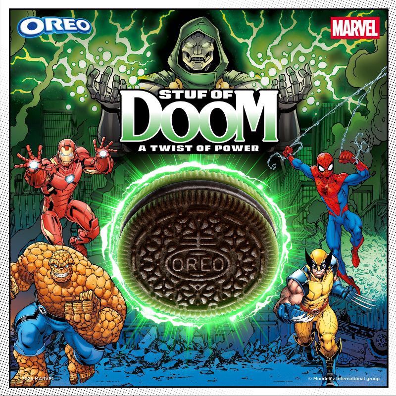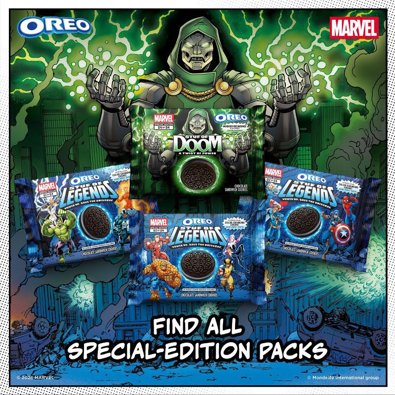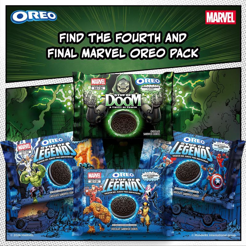- One 10.68 oz pack of special edition MARVEL OREO Stuf of Doom Chocolate Sandwich Cookies